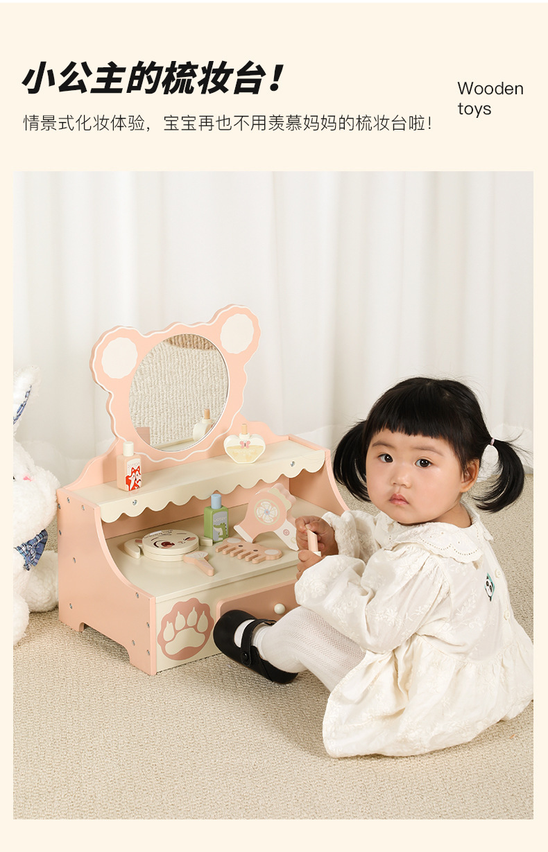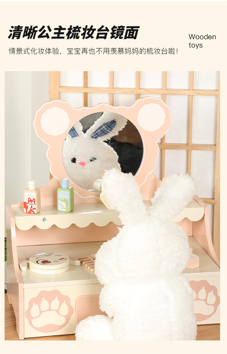 兒童木質仿真扮家家酒小熊梳妝台角色扮演小公主化妝台早教益智玩具
