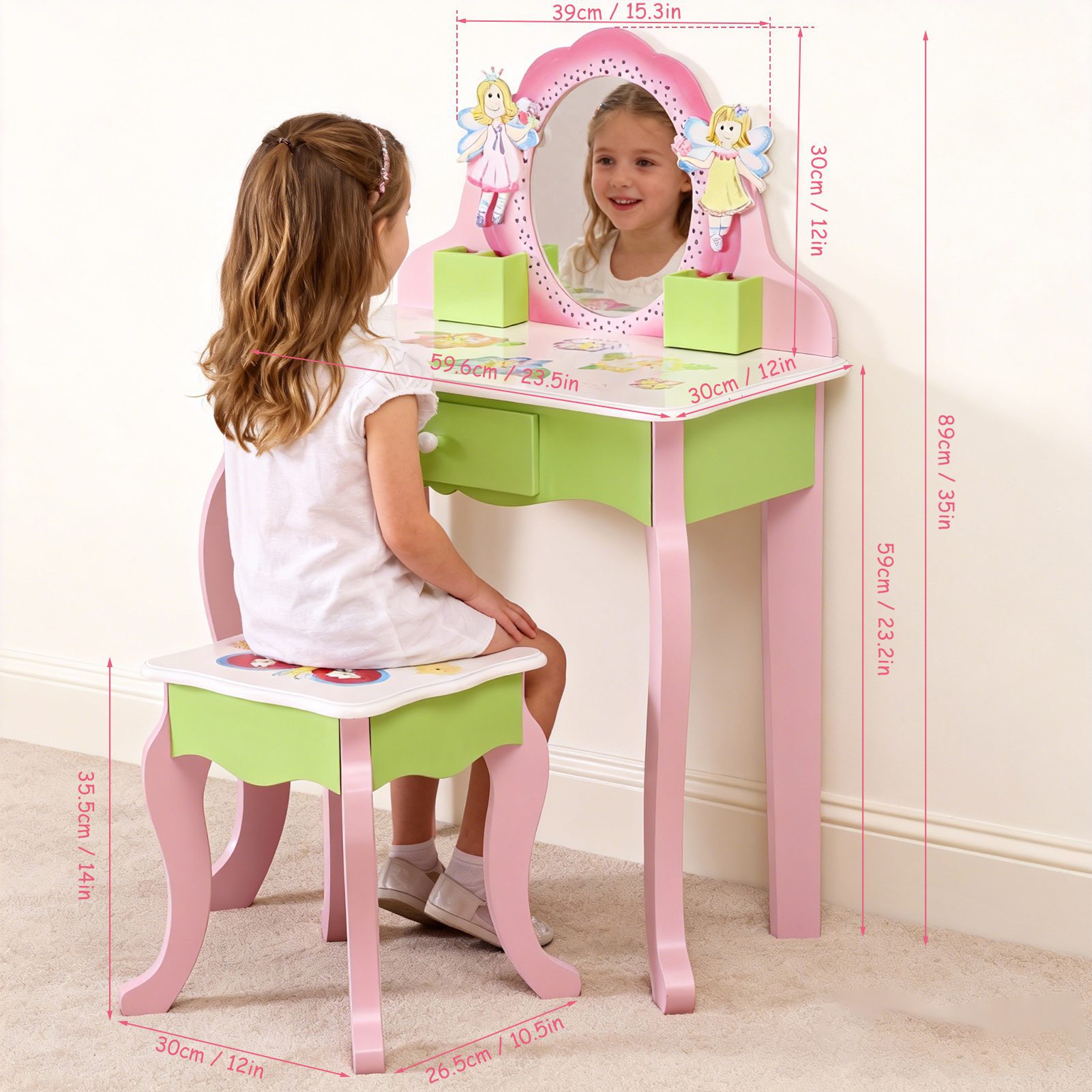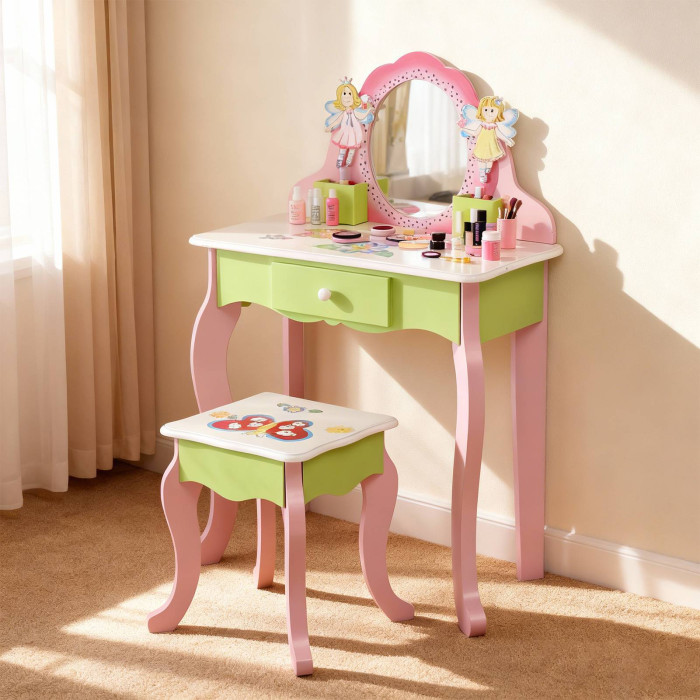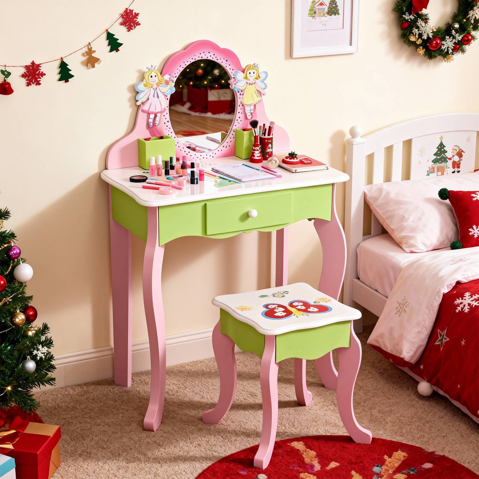 兒童木質仿真梳妝台公主生日禮物化妝桌扮家家酒木製玩具套裝