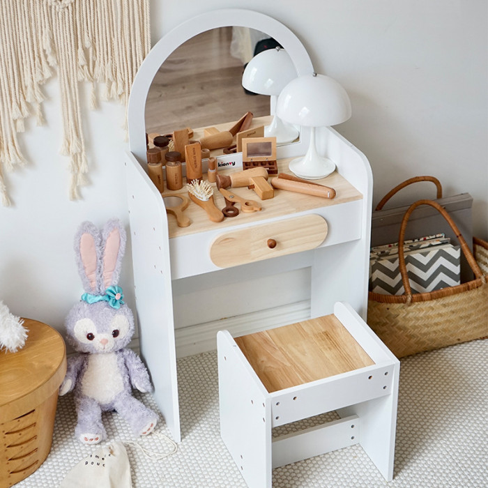 kienvy韓國兒童梳妝台女孩小公主化妝包品玩具木質扮家家酒仿真面膜