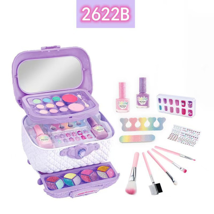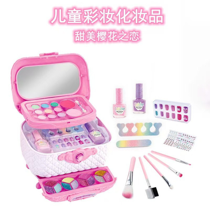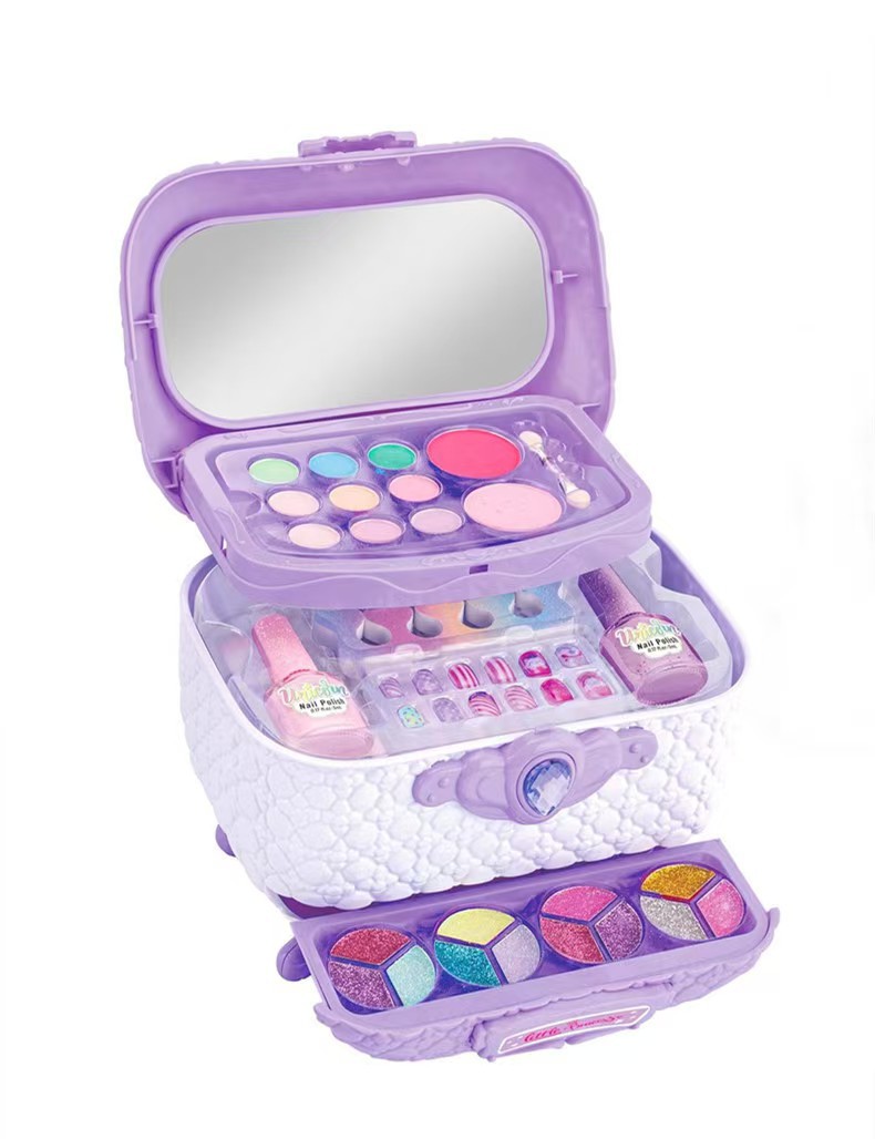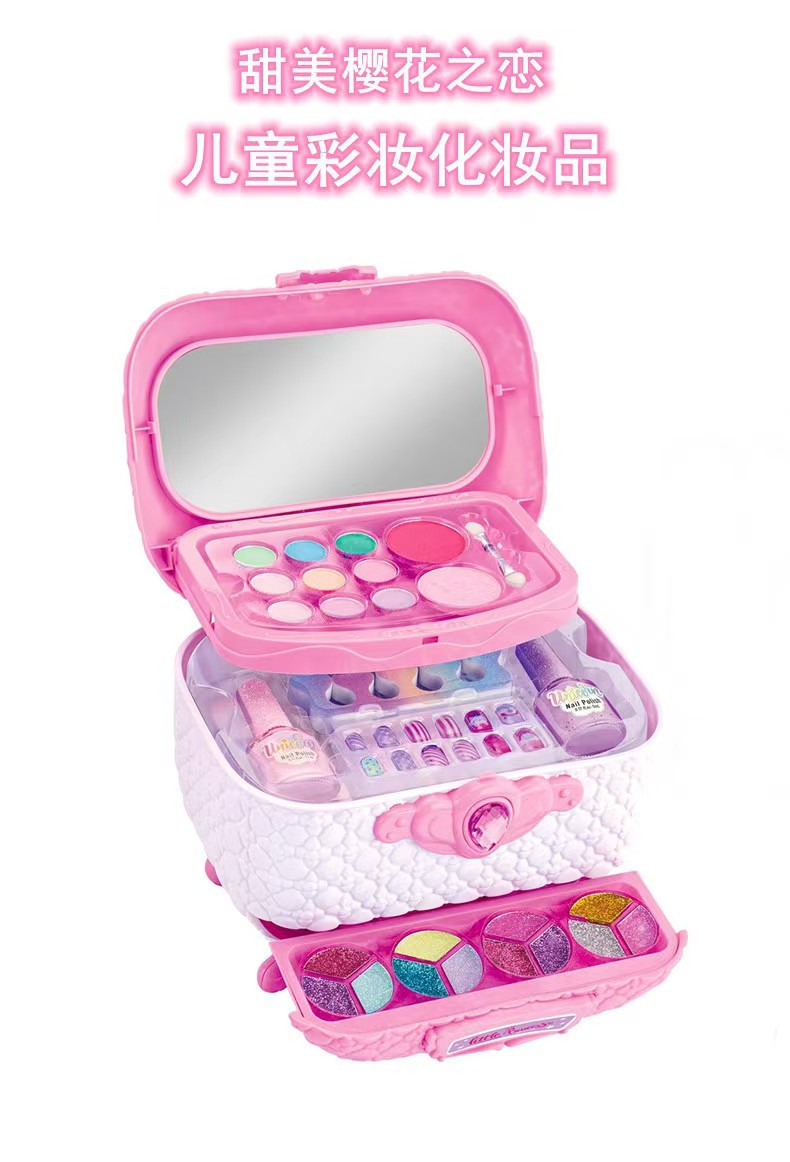 兒童彩妝扮家家酒兒童化妝品套裝彩裝箱手提箱指甲油梳妝台