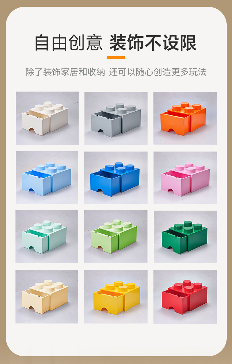 純色款四顆粒積木防塵抽屜式收納展示盒可堆曡整理收納穀子玩具
