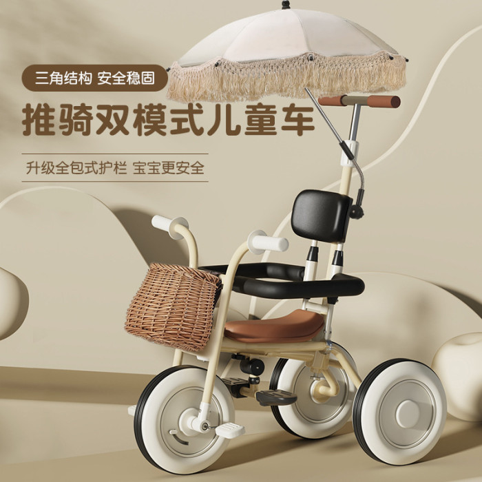 遛娃車兒童三輪車腳踏車1-3-6嵗寶寶腳蹬車手推車輕便復古自行車