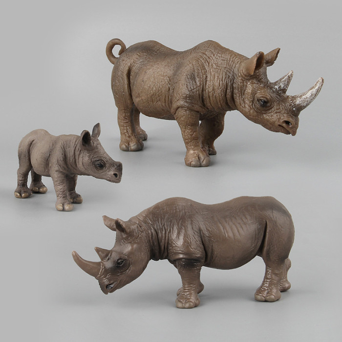 14CM實心犀牛野生動物園模型仿真 犀牛動物模型擺件