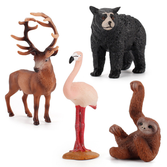 仿真野生動物模型實心模型火烈鳥樹懶長臂猴黑熊麋鹿科教認知擺件
