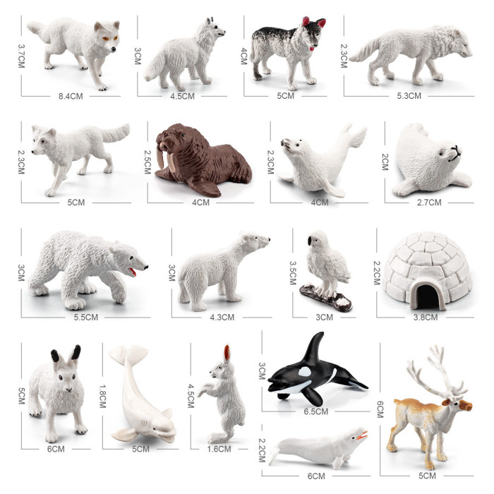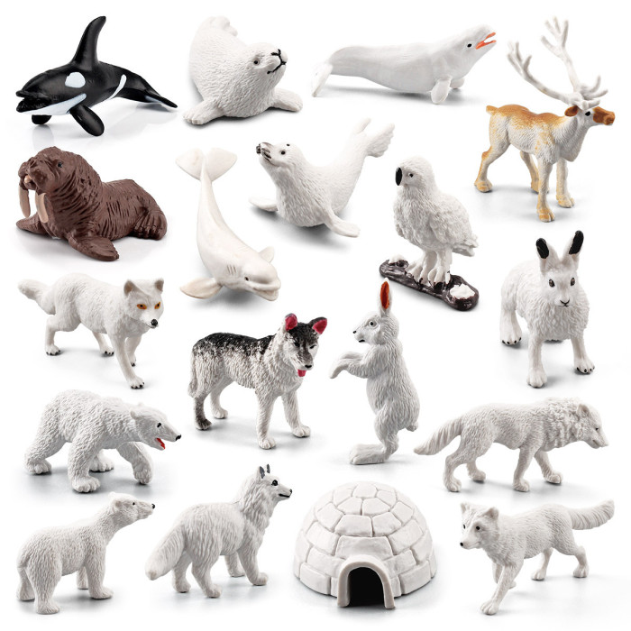 兒童仿真18件套迷你北極冬季動物模型 白鯨海豹哈士奇擺件玩具
