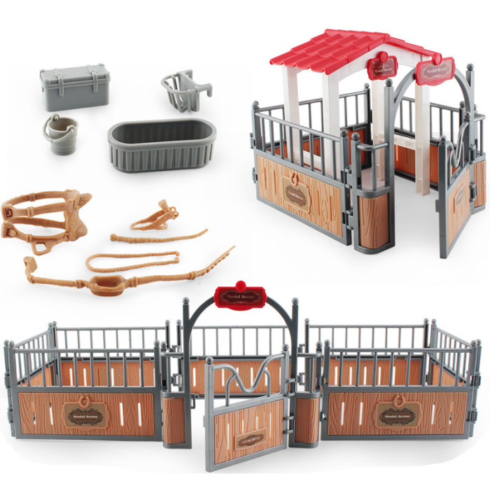 仿真牧場場景裝飾配件馬鞍馬欄涼亭食槽圍欄靜態模型擺件
