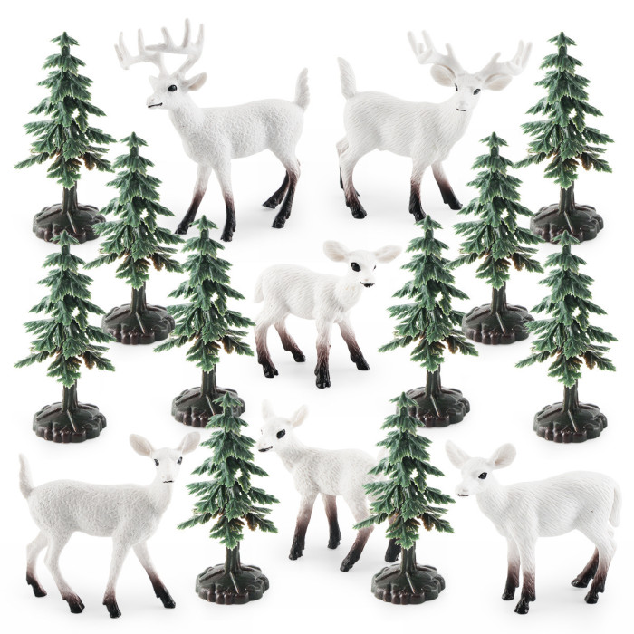 仿真白尾鹿聖誕樹模型森林雪地白尾鹿松樹聖誕節桌面擺件
