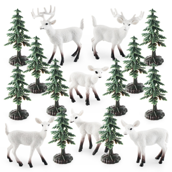 新品聖誕節場景擺件仿真聖誕樹白尾鹿套裝沙盤桌面靜態模型
