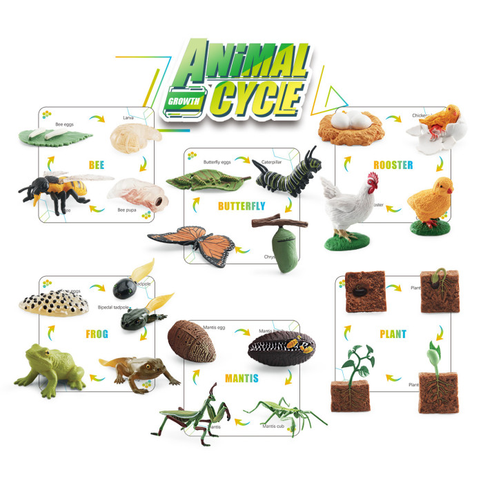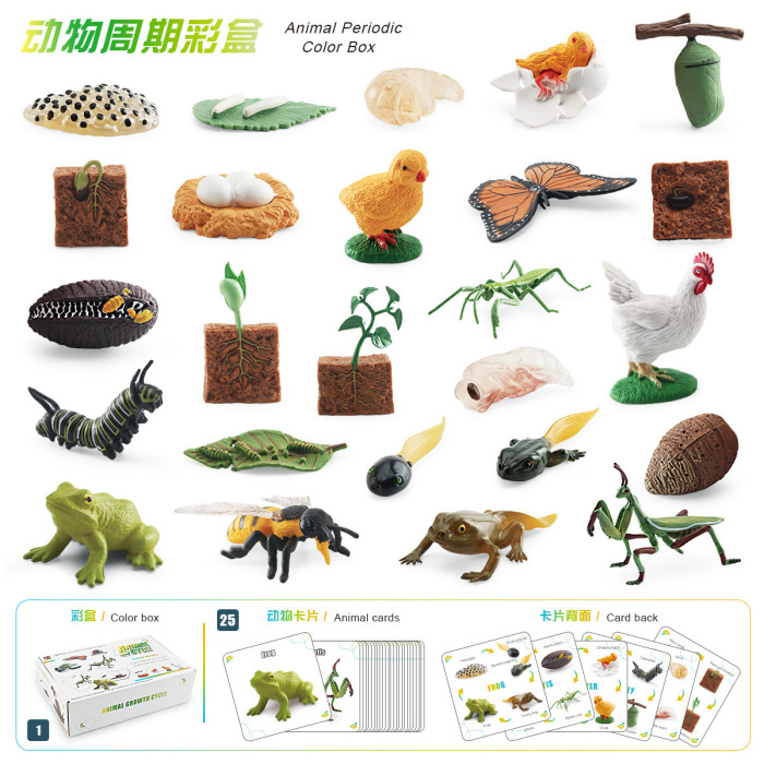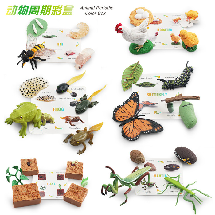 家仿真崑蟲成長周期彩盒套裝植物蜜蜂蝴蝶青蛙模型擺件套裝
