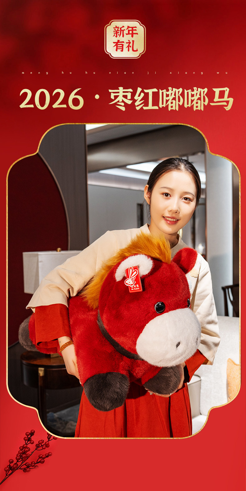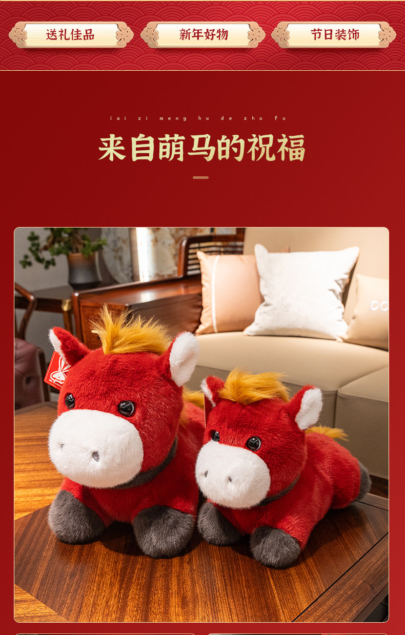 2026馬年吉祥物仿真生肖小馬毛絨玩具公仔嘟嘟馬陪睡兒童抱枕玩偶
