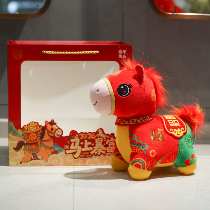 2026馬年吉祥物福馬賀嵗公仔布娃娃生肖小馬玩偶毛絨玩具新年禮物