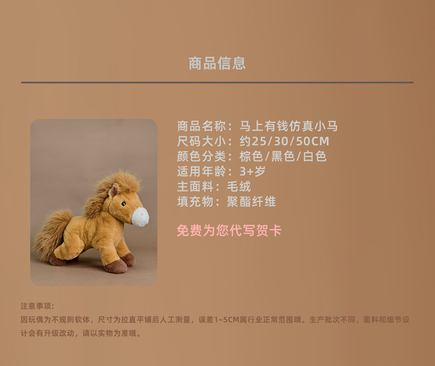 2026馬年吉祥物仿真小馬兒公仔馬上有錢玩偶沙發擺件年會禮物