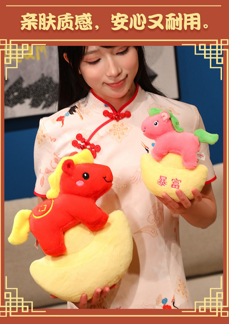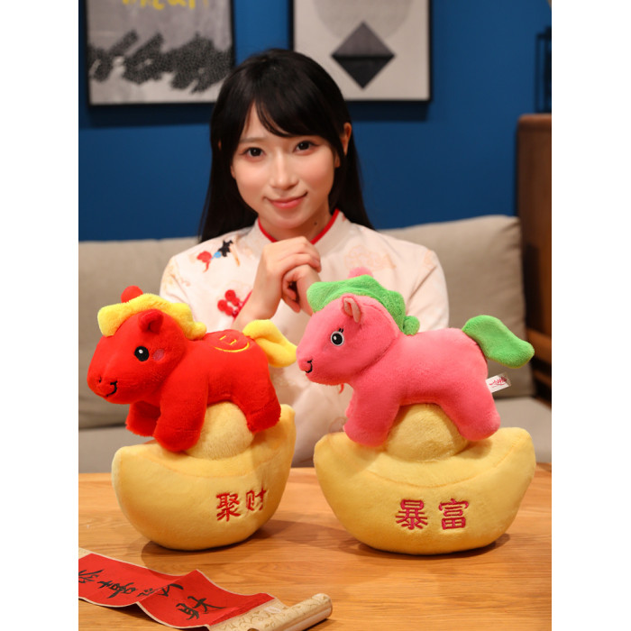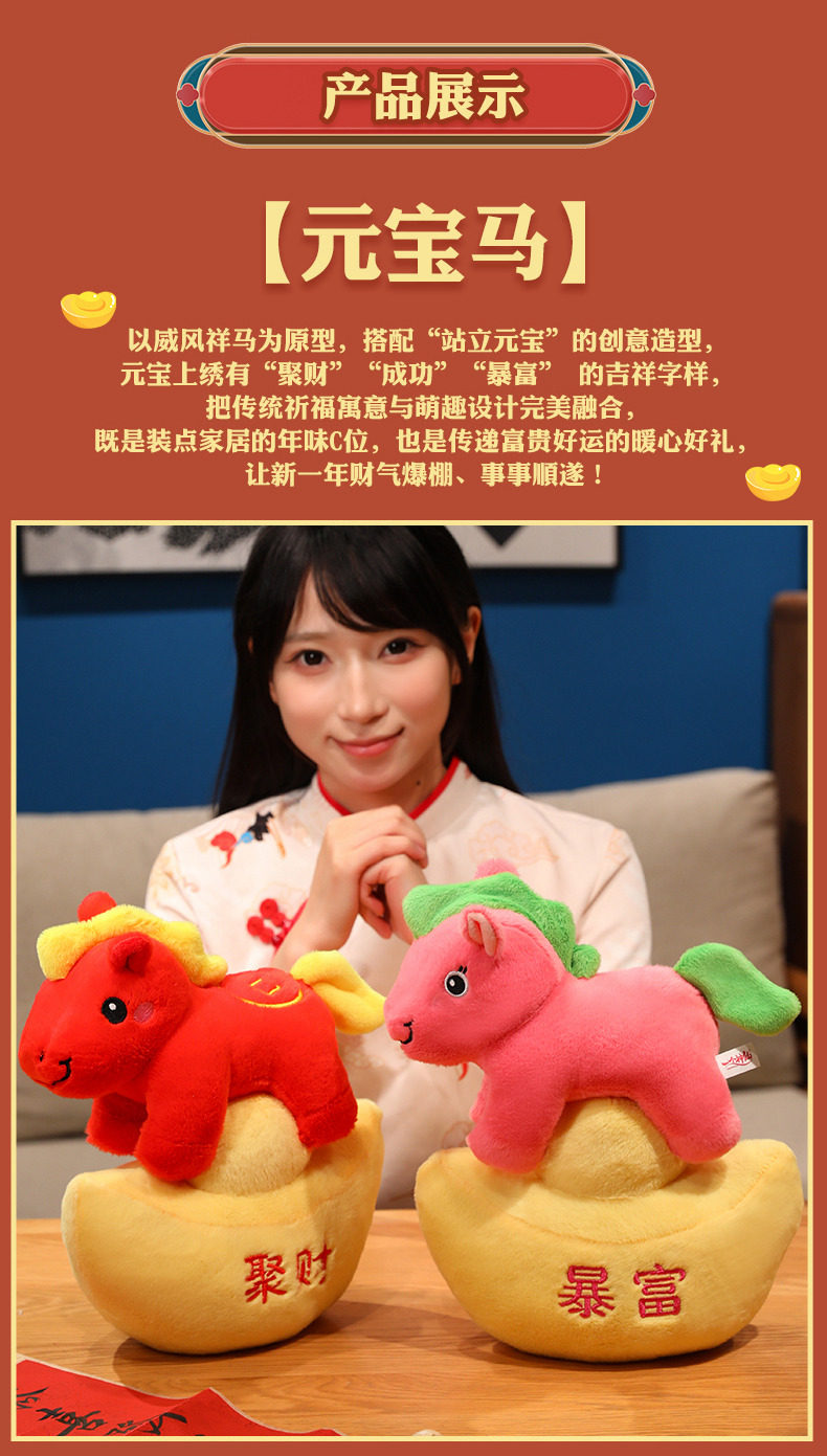 2026馬年吉祥物春節吉祥物元寶馬毛絨公仔馬年生肖年會禮品擺件女