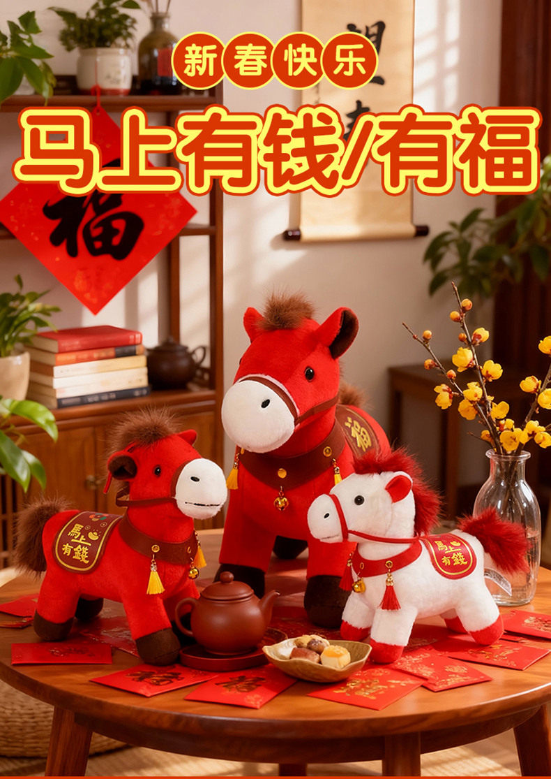 2026馬年吉祥物公仔馬上有錢小馬玩偶毛絨玩具娃娃新年會禮物