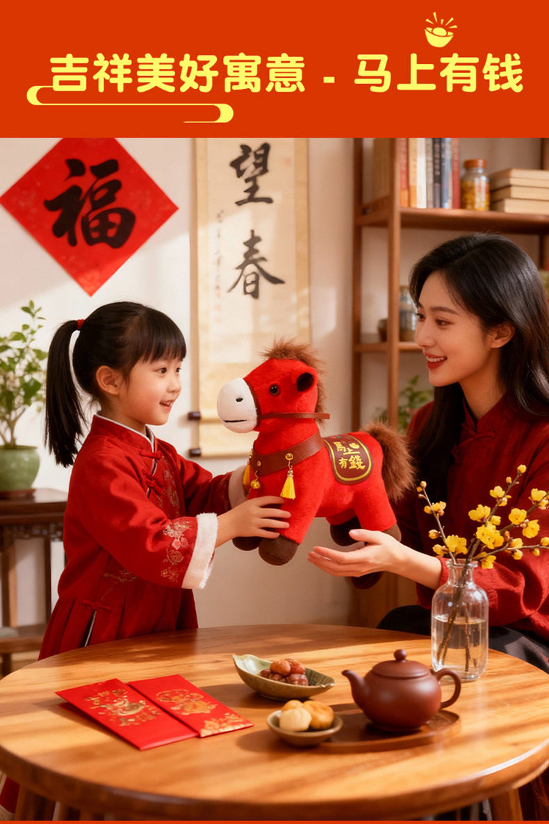 2026馬年吉祥物公仔馬上有錢小馬玩偶毛絨布娃娃年會新年禮物