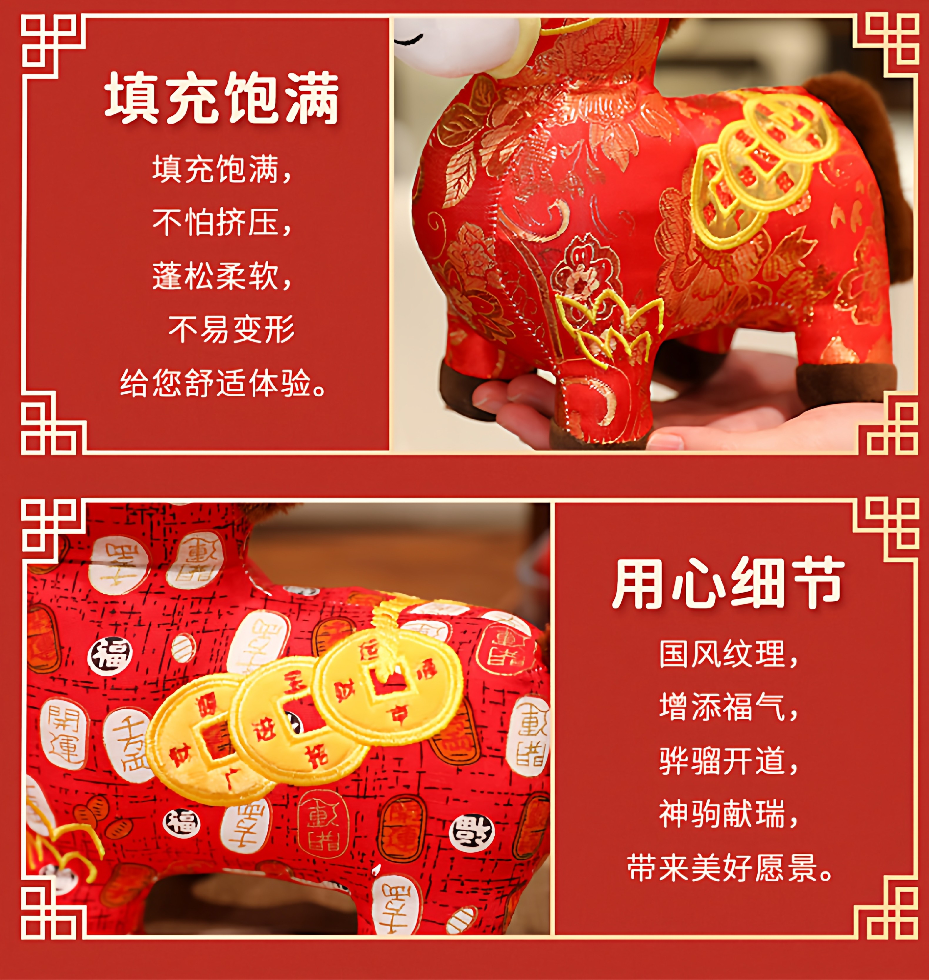 2026馬年吉祥物可愛小馬毛絨玩具生肖馬公仔布娃娃年會禮品