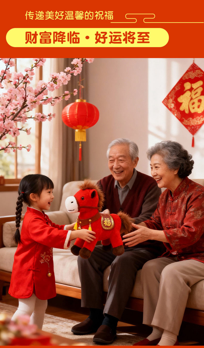 2026馬年吉祥物小紅馬公仔毛絨玩具生肖娃娃玩偶年貨禮品新年禮物