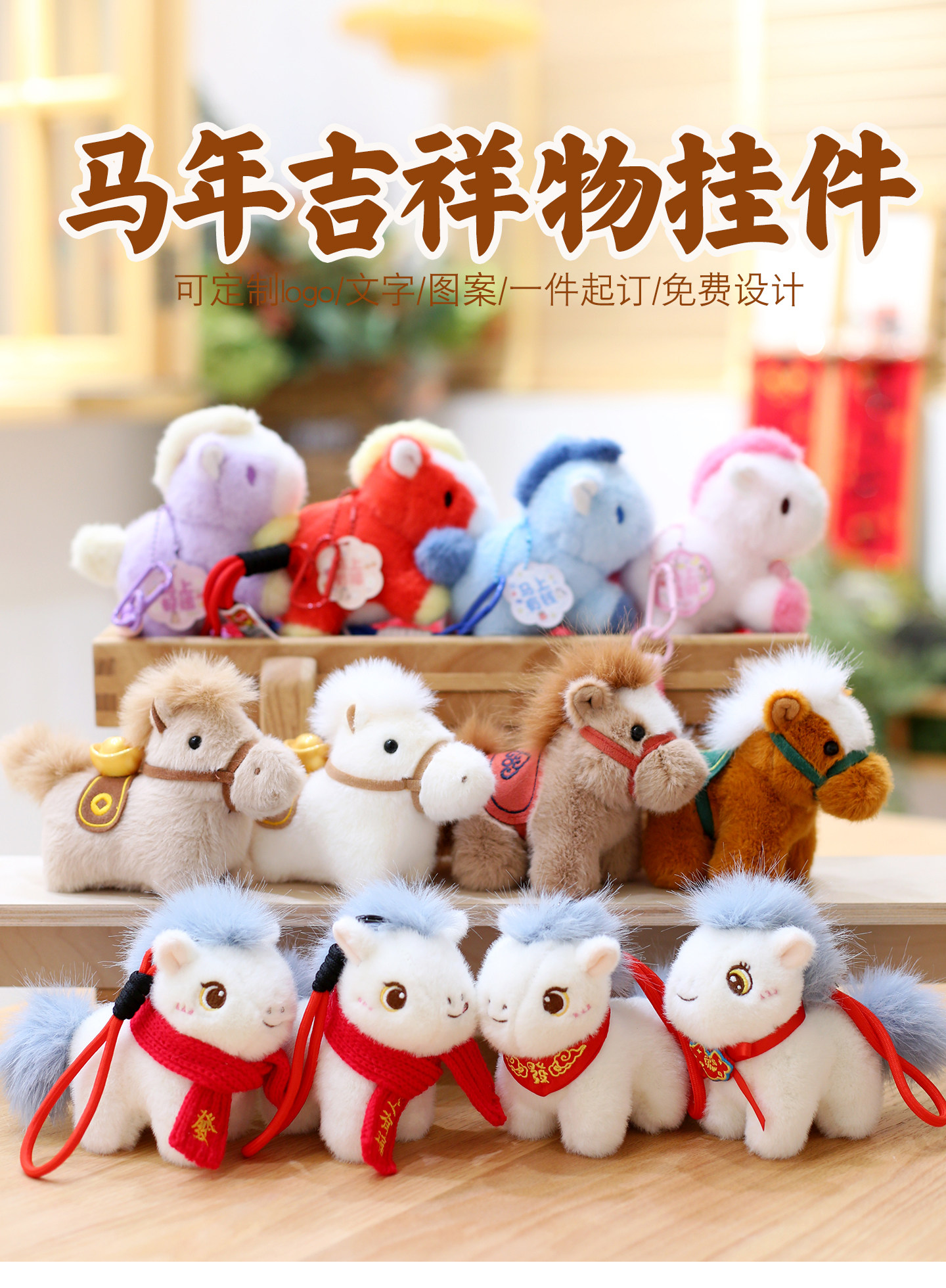 2026馬年吉祥物公仔新年小馬毛絨玩具掛件生肖馬後背包掛飾新年禮物