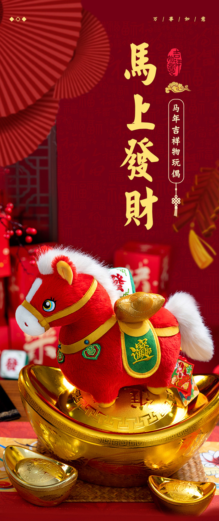 2026馬年公仔馬上發財吉祥物生肖馬發財樹玩偶馬上發財毛絨布娃娃