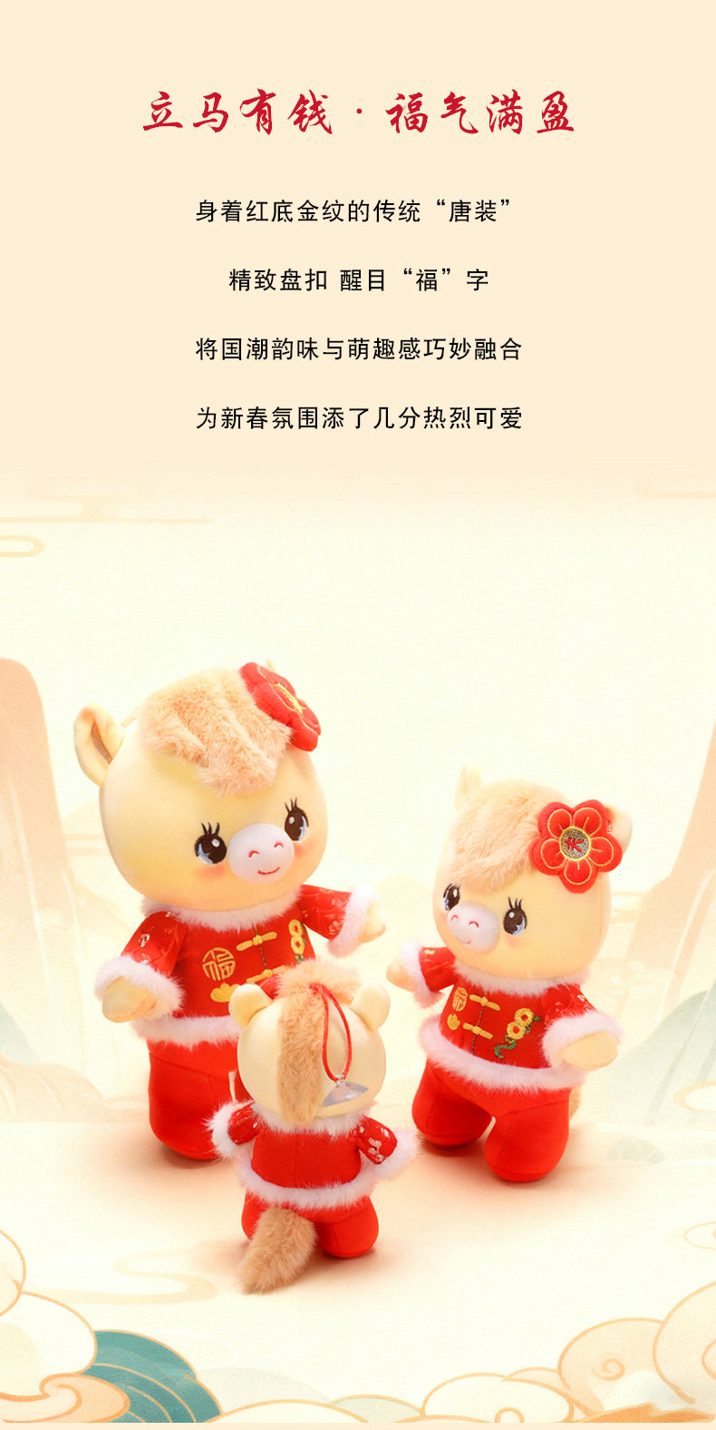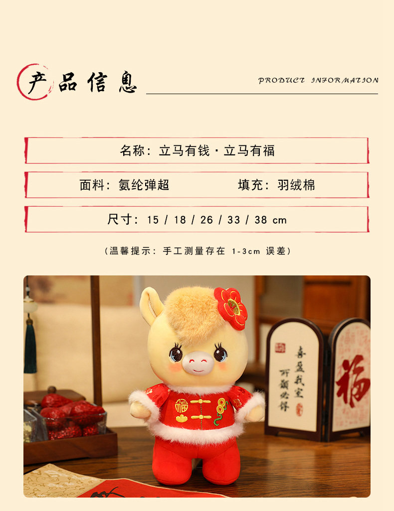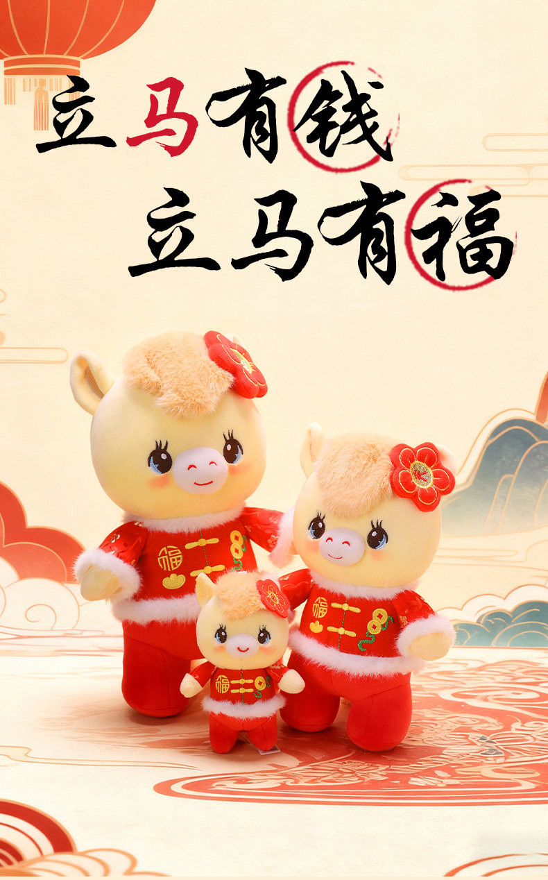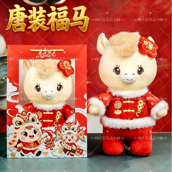 2026馬年吉祥物公仔單位開門紅活動禮品唐裝馬玩偶生肖馬禮物