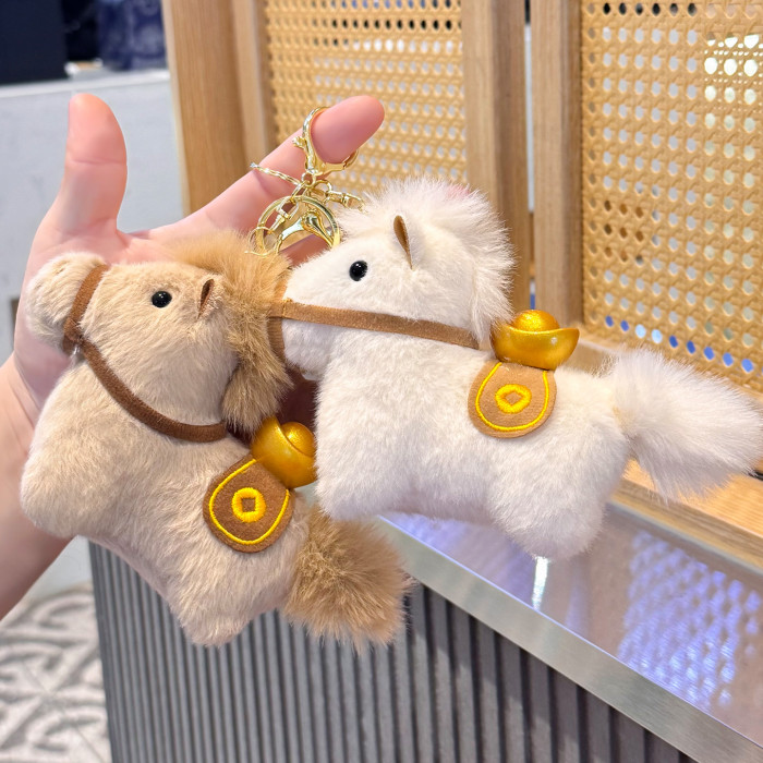 紅色元寶小馬毛絨掛件2026馬年吉祥物公仔馬上有錢生肖小馬鑰匙釦
