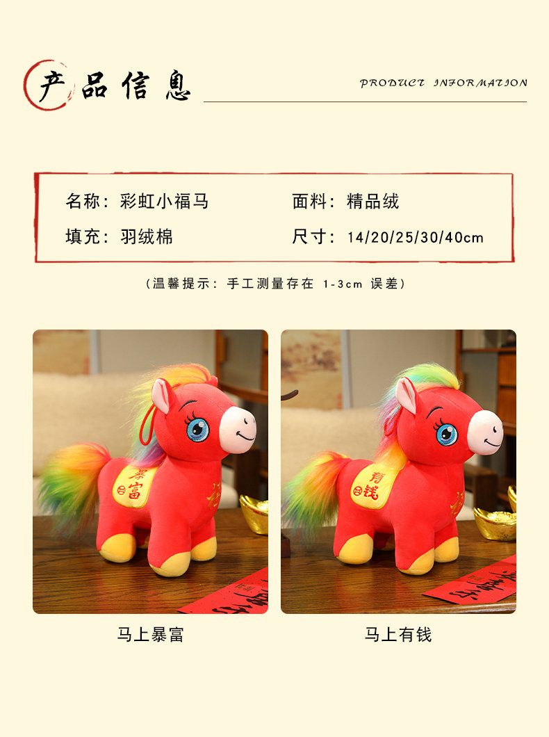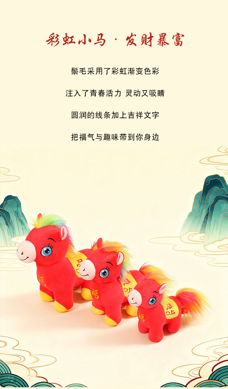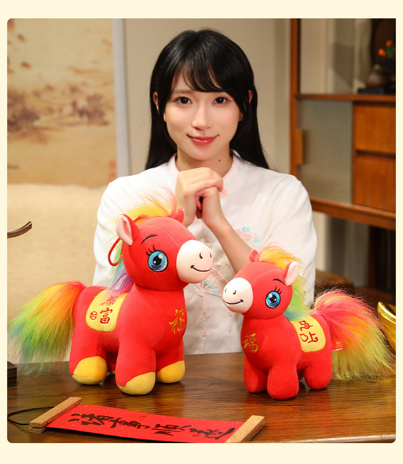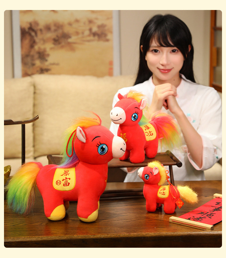 2026馬年吉祥物新年氛圍裝飾公仔小馬毛絨玩具本命年生肖馬玩偶