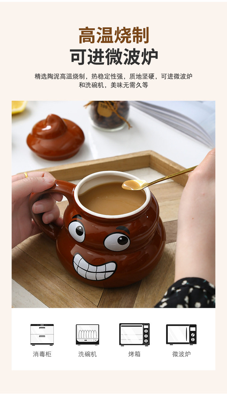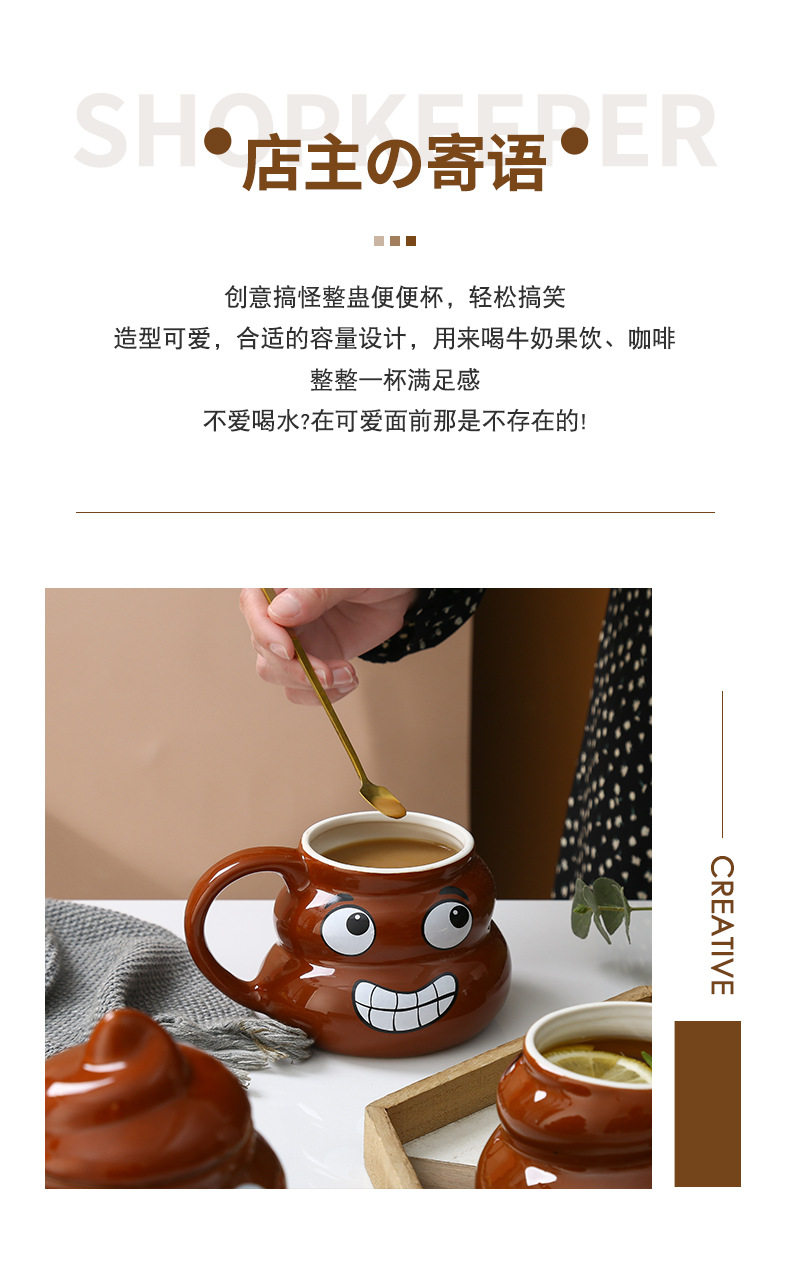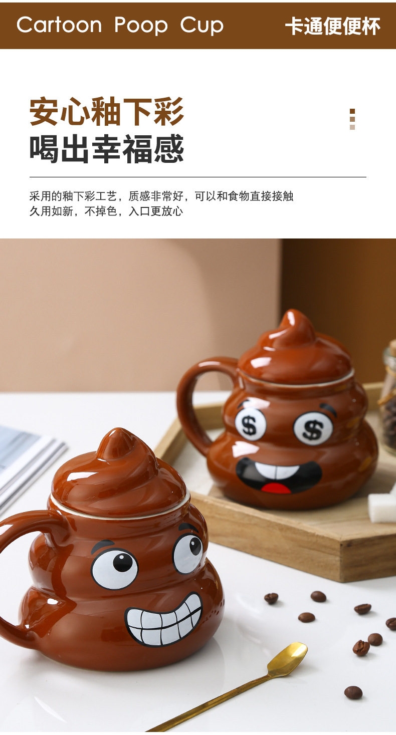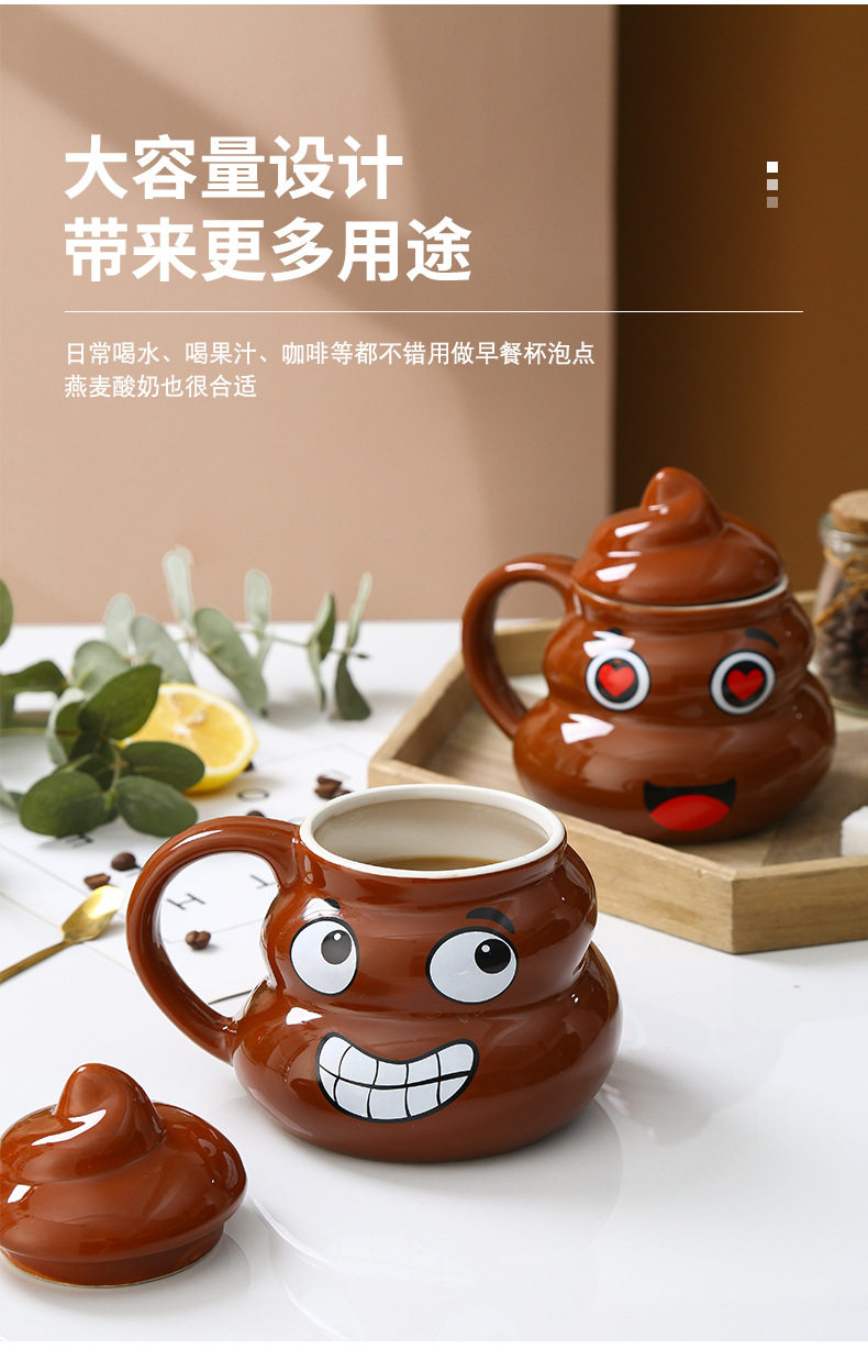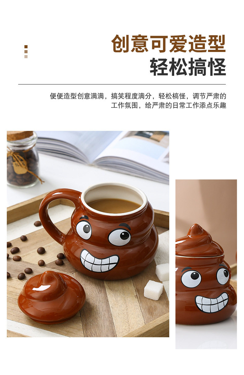 抽象搞怪喝水咖啡馬克杯子帶蓋陶瓷大便便粑粑醜到爆稀奇古怪禮物