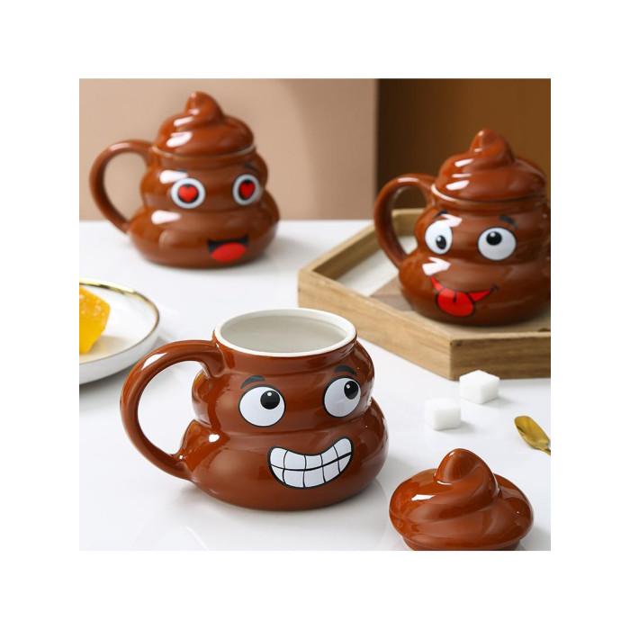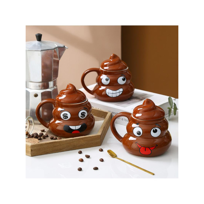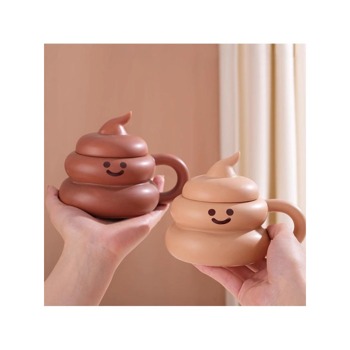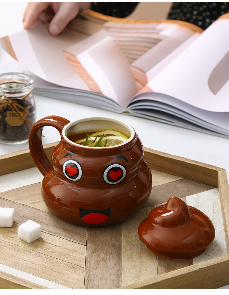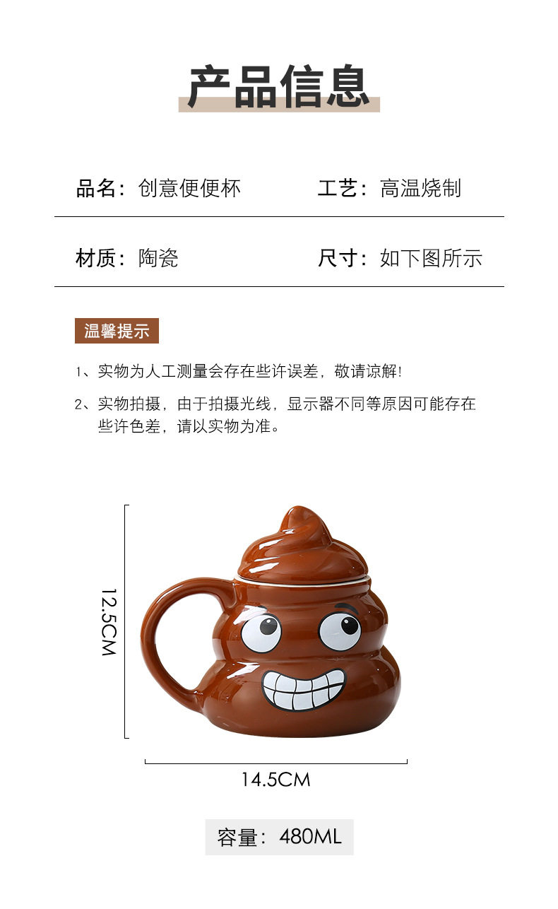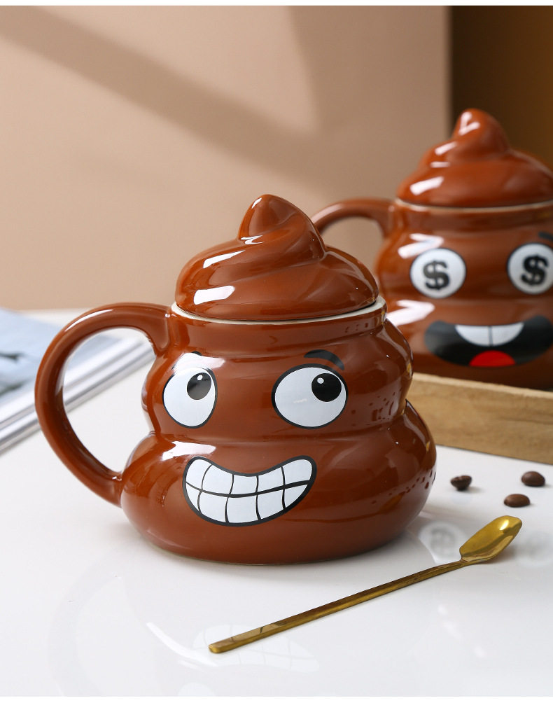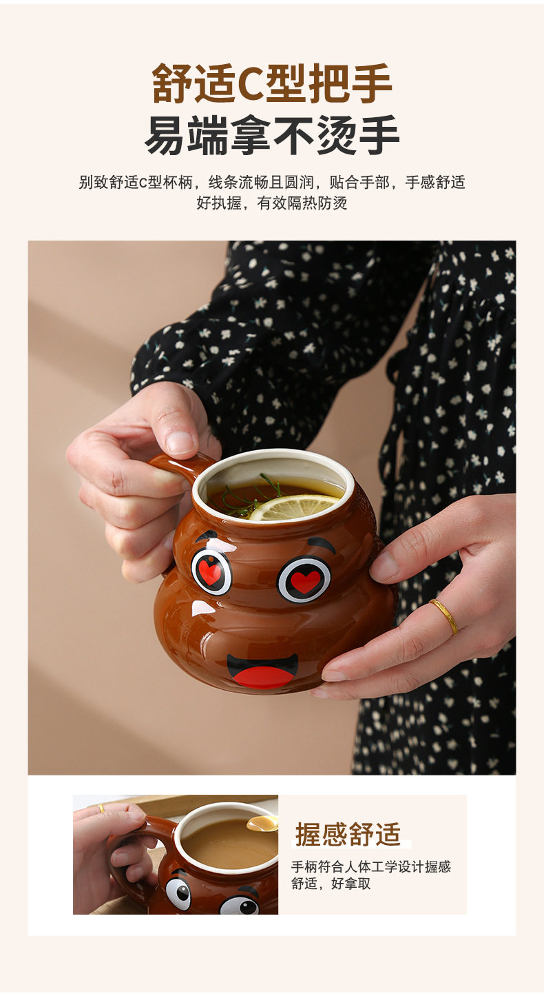 抽象搞怪喝水咖啡馬克杯子帶蓋陶瓷大便便粑粑醜到爆稀奇古怪禮物