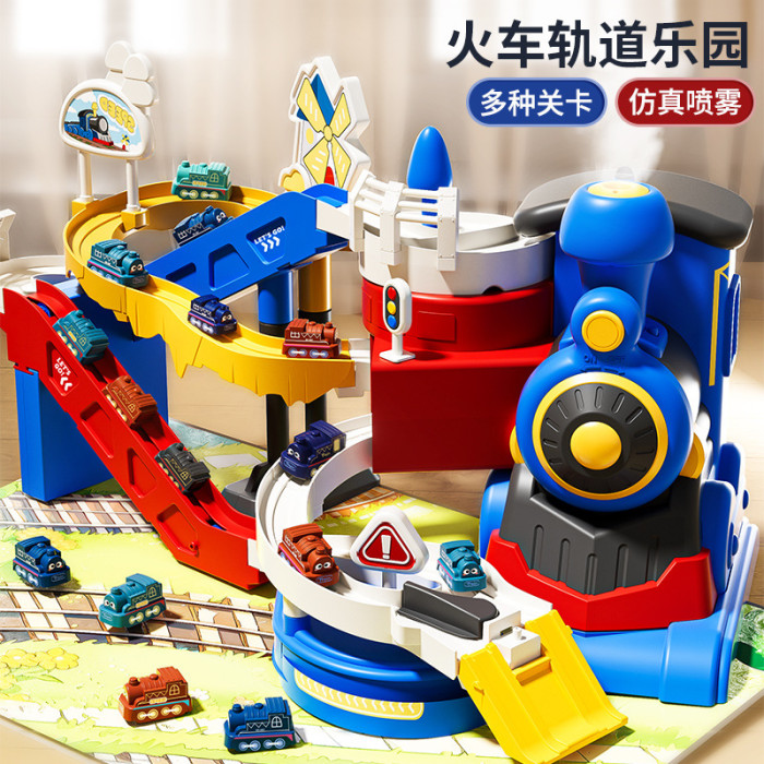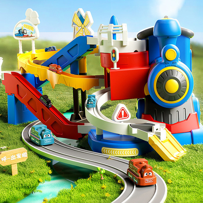 火車軌道車闖關大冒險汽車大樓停車場兒童玩具男孩3嵗4生日禮物