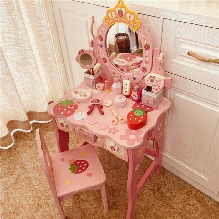 兒童梳妝台仿真木質公主化妝台扮家家酒玩具套裝3-6嵗女孩生日禮物