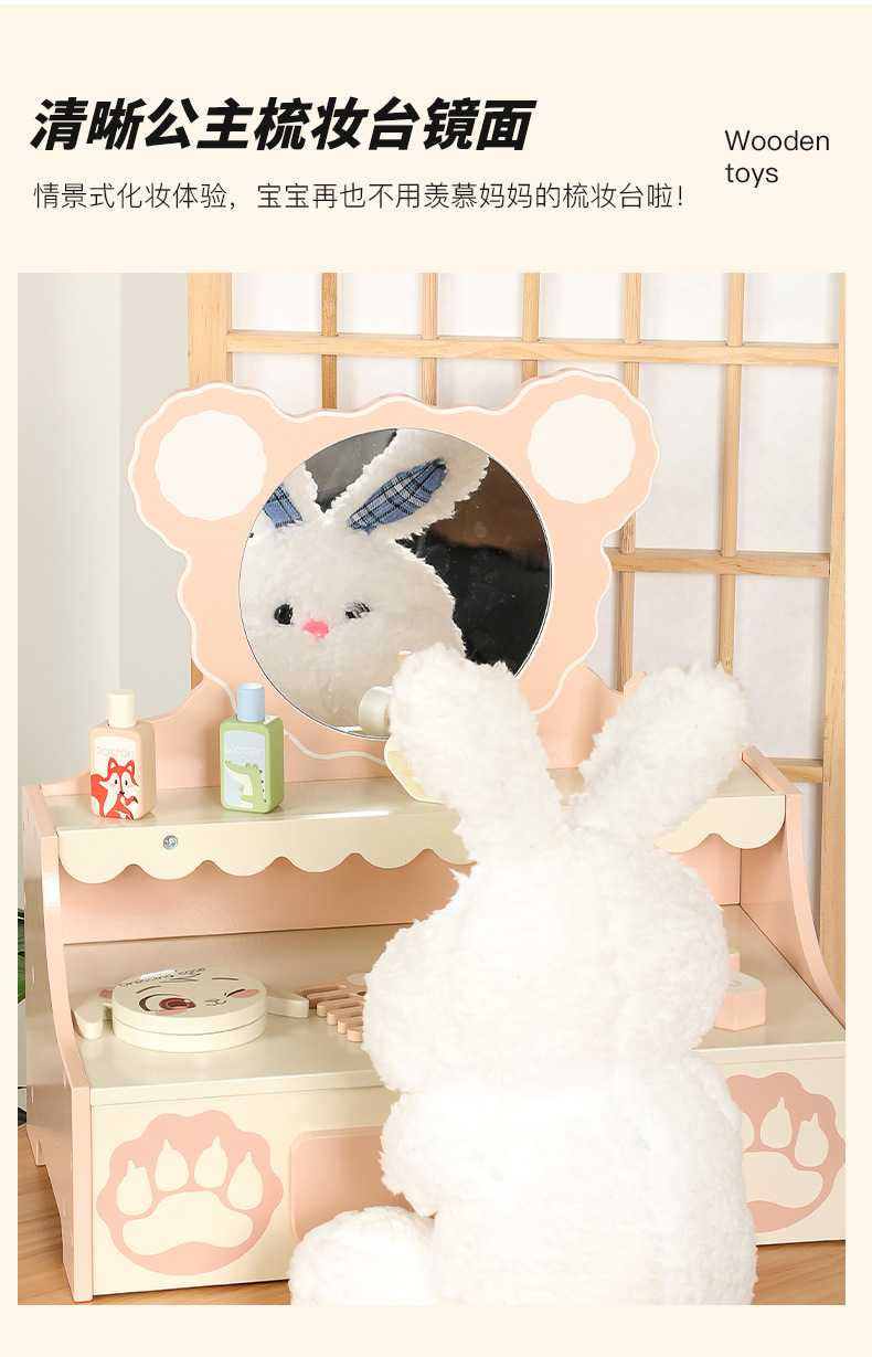 仿真木製兒童梳妝台動物圖形化妝台扮家家酒玩具套裝3-6嵗女孩禮物