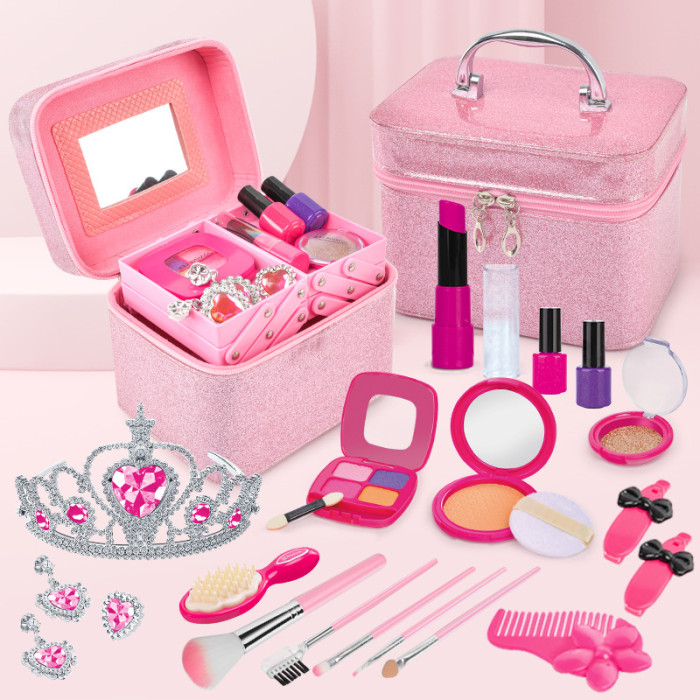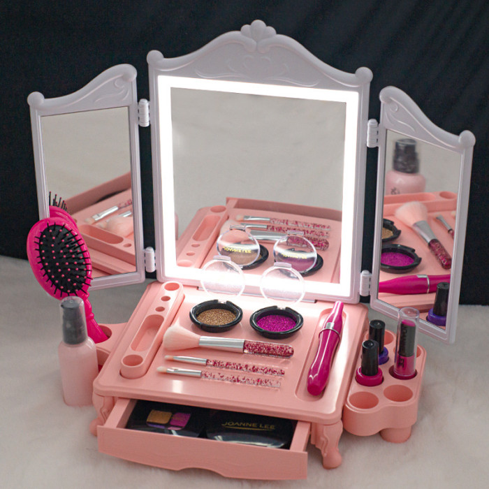 兒童仿真化妝品無毒梳妝台套裝美甲口紅睫毛膏美妝盒女孩玩具禮盒