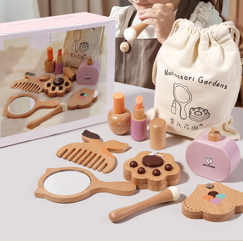 兒童早教木質扮家家酒公主化妝包套裝仿真化妝品梳妝台女孩益智玩具