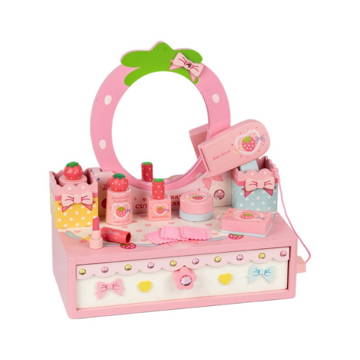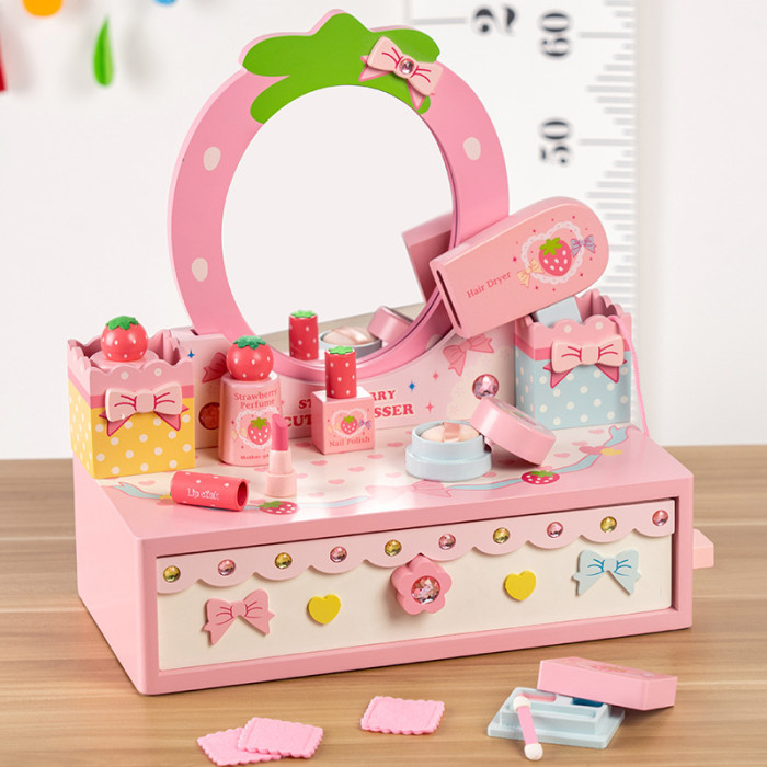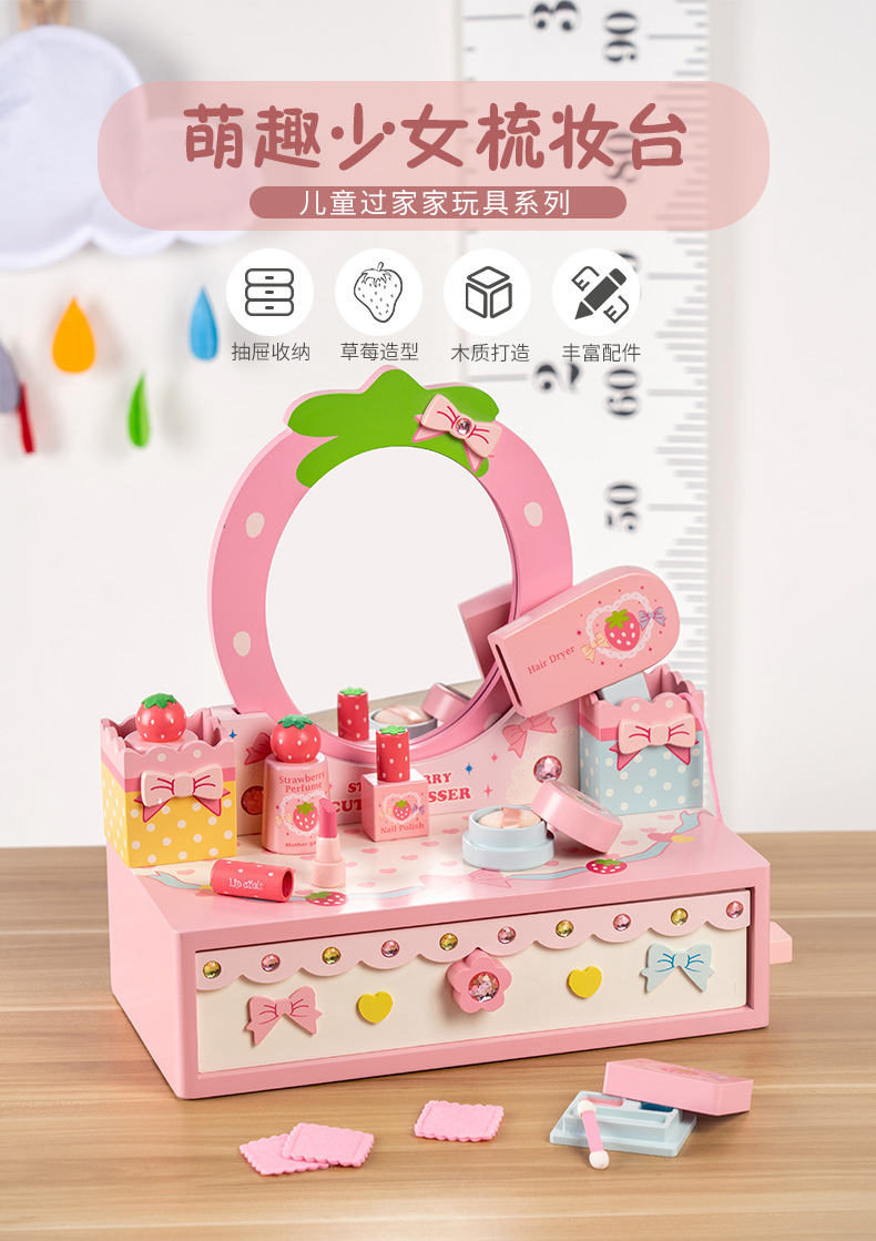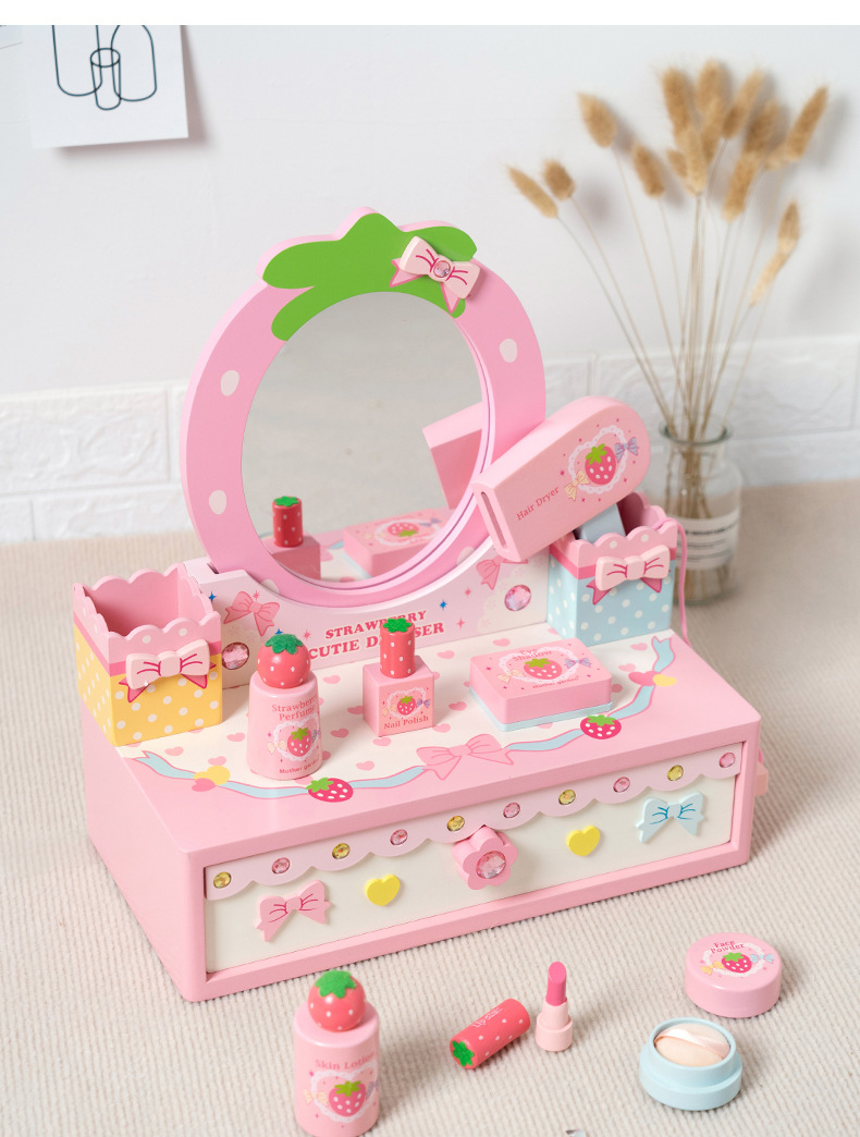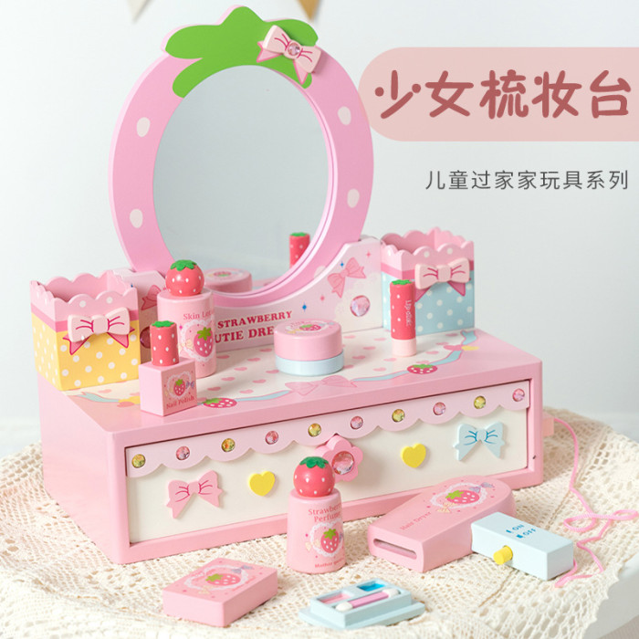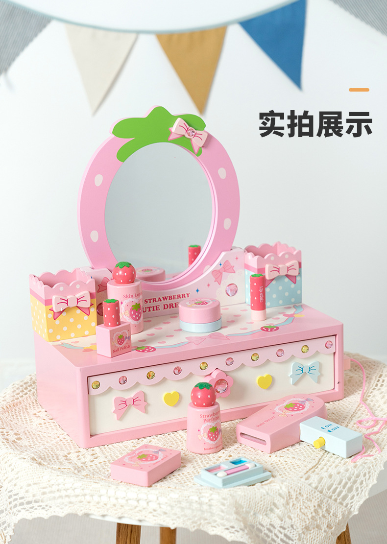 女孩兒童生日禮物仿真公主梳妝台化妝包3-4-5-6嵗扮家家酒木製玩具