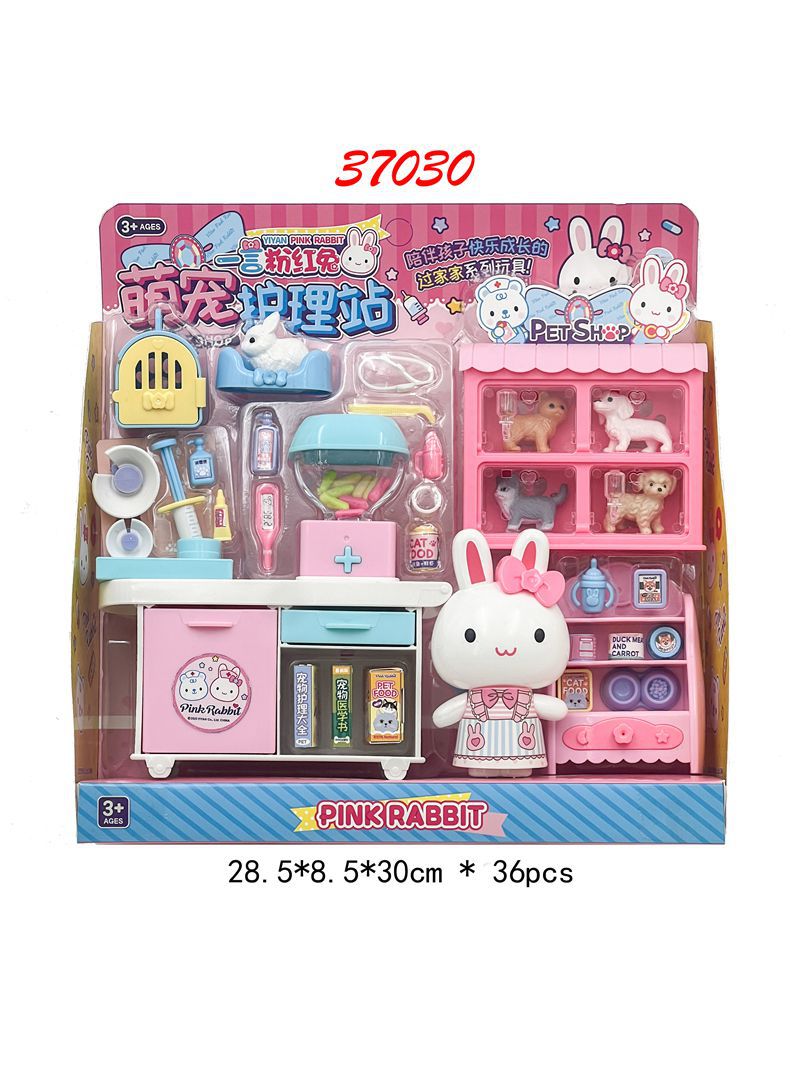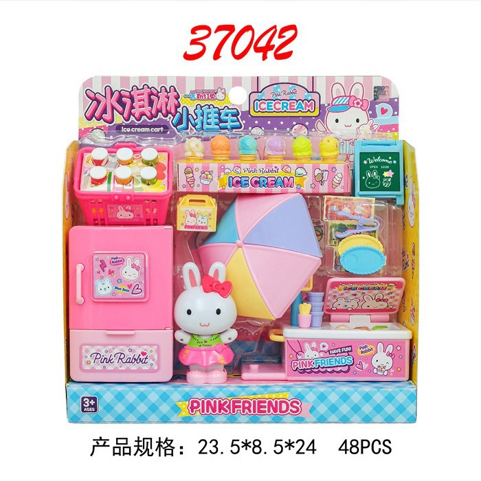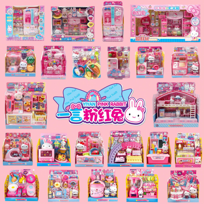一言粉紅兔廚房冰箱迷你化妝台蛋糕派對仿真醫具女孩子扮家家酒玩具