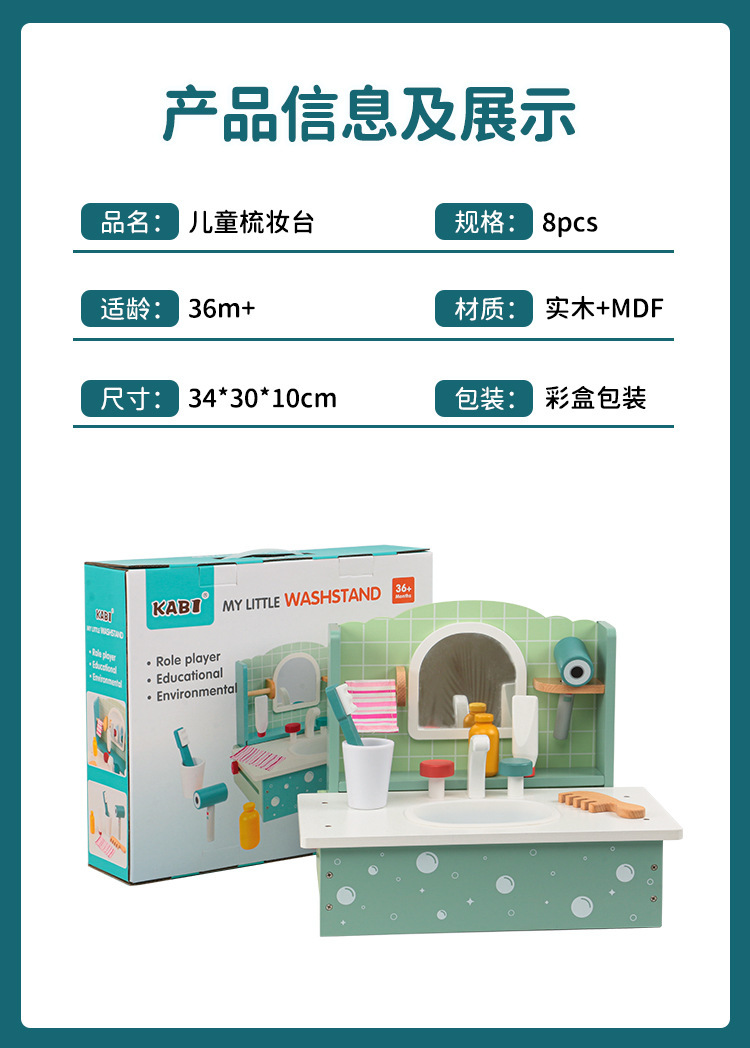 木製扮家家酒梳妝洗漱台玩具套裝兒童仿真親子互動模擬扮演女化妝台