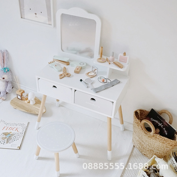 兒童木製仿真化妝台桌女孩梳妝台玩具扮家家酒套裝寶寶禮物