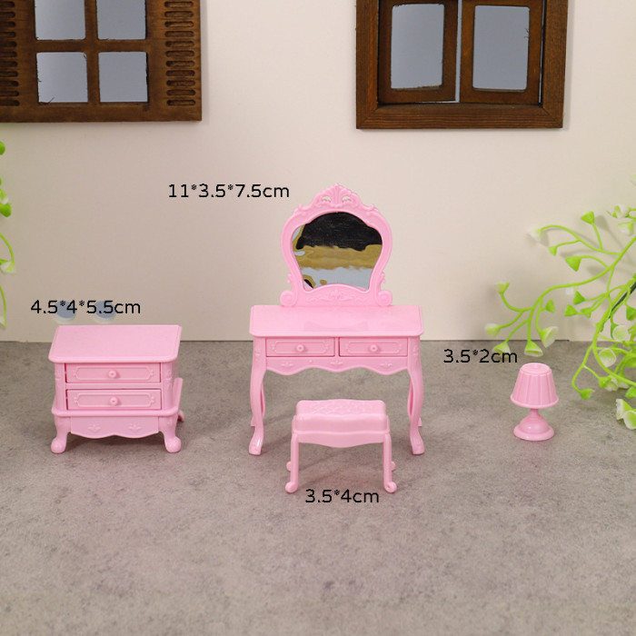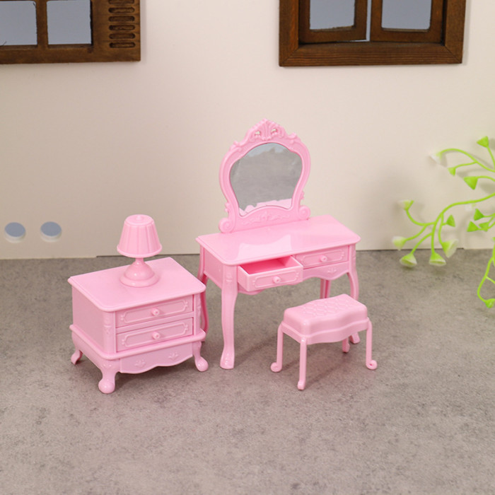 迷你家具臥室場景娃娃屋配件梳妝台床頭櫃梳妝桌化妝台兒童扮家家酒
