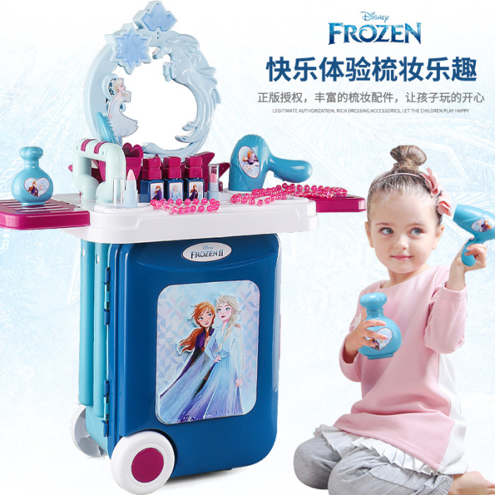 正版授權兒童化妝品彩妝盒套裝女孩梳妝台公主冰雪奇緣扮家家酒玩具