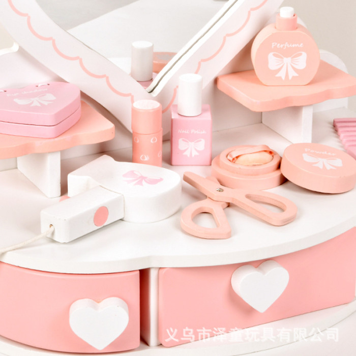 兒童木製玩具仿真粉白梳妝台化妝扮家家酒角色扮演玩具女孩套裝禮物