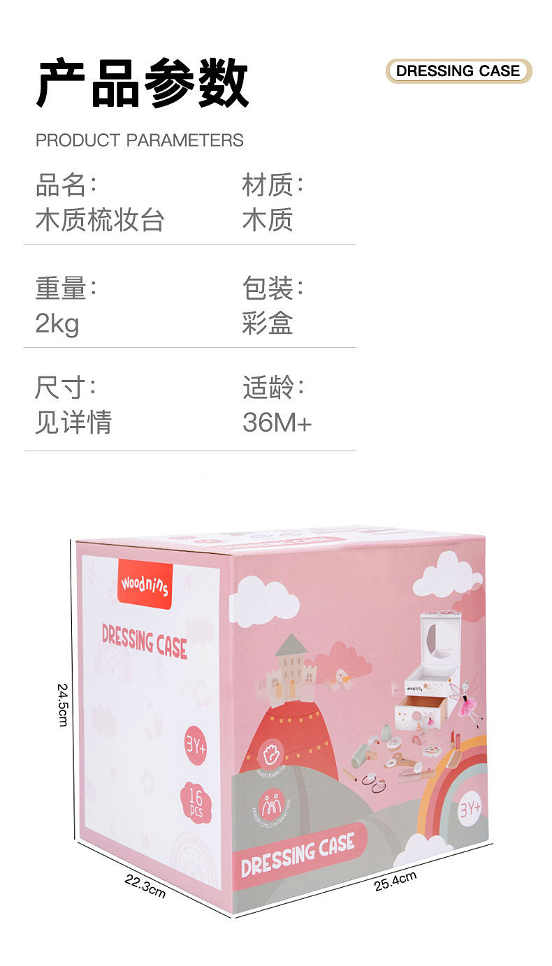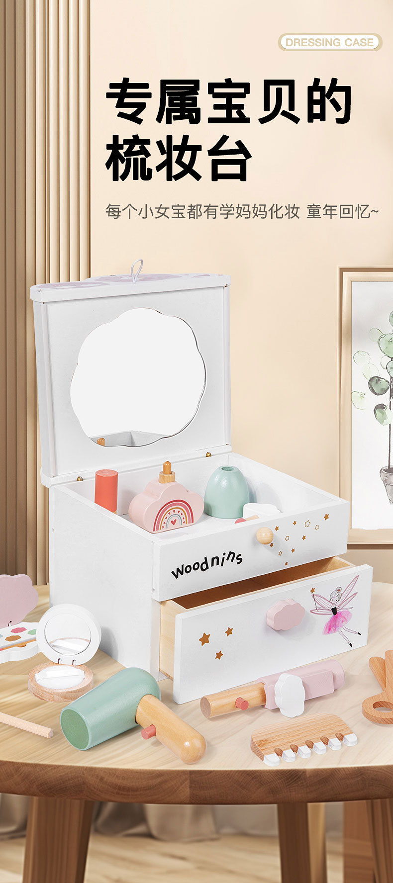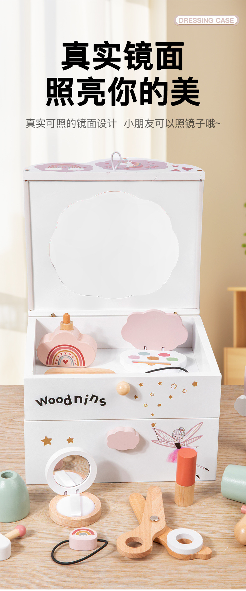 雲朵梳妝盒woodnins公主仿真扮家家酒化妝台玩具彩妝打扮化妝品玩具