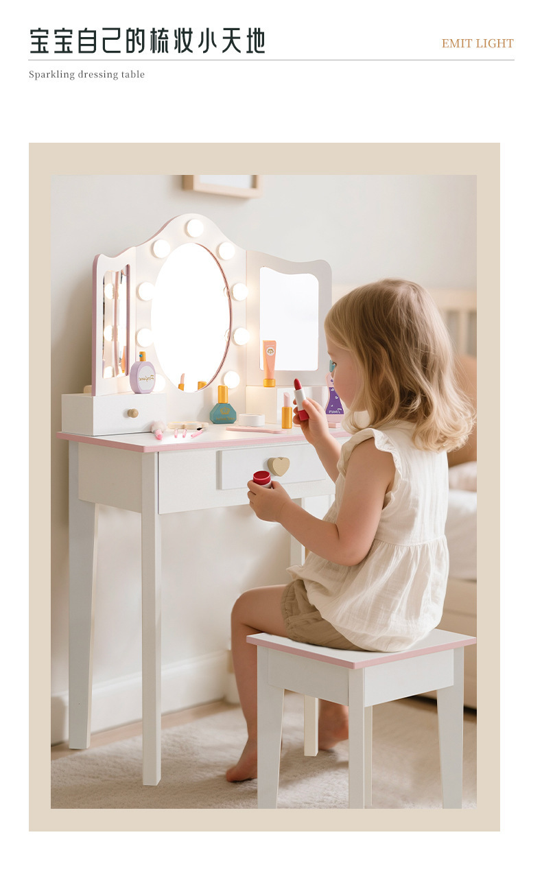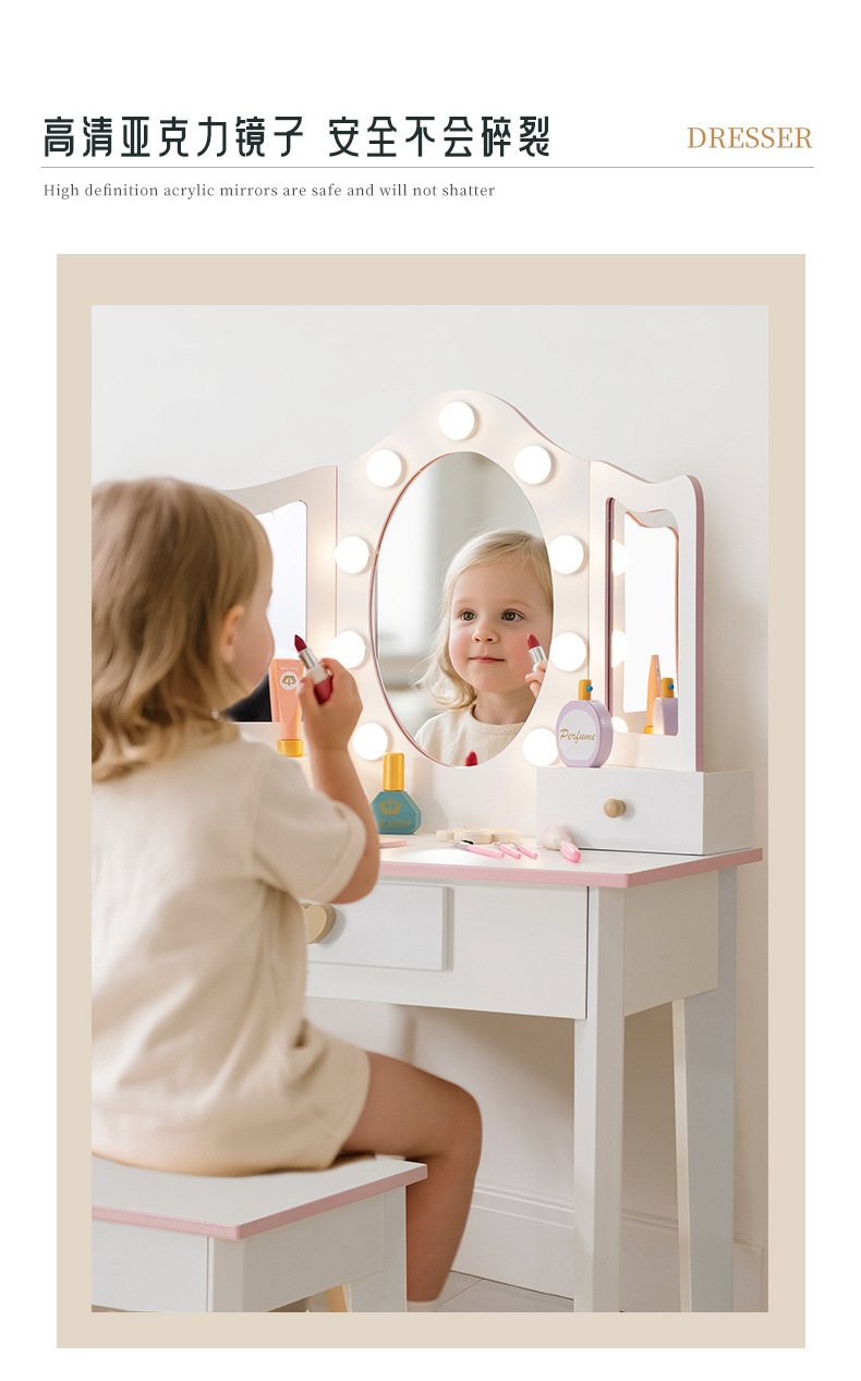 兒童扮家家酒木質仿真梳妝台玩具女孩生日禮物大號化妝台角色扮演