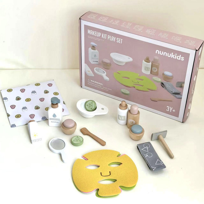 nunukids兒童化妝玩具木質女孩仿真面膜套裝扮家家酒梳妝台生日禮物
