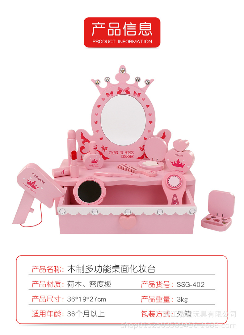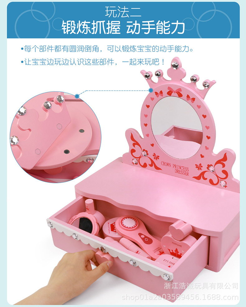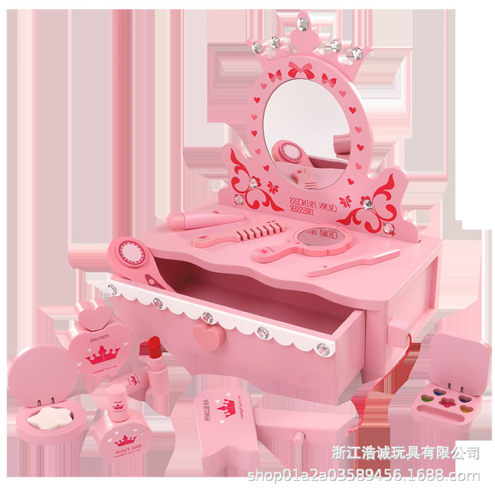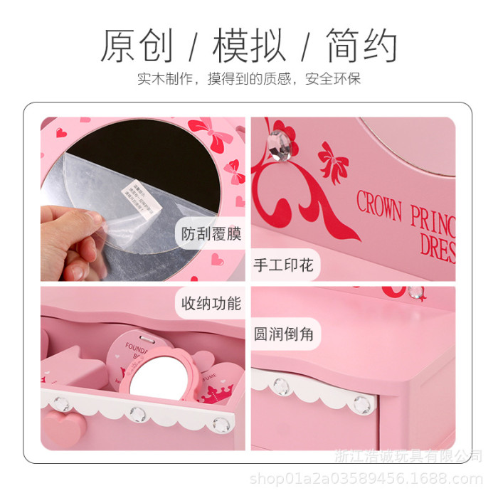 兒童仿真梳妝台公主化妝桌首飾盒女孩寶寶生日禮物扮家家酒木製玩具