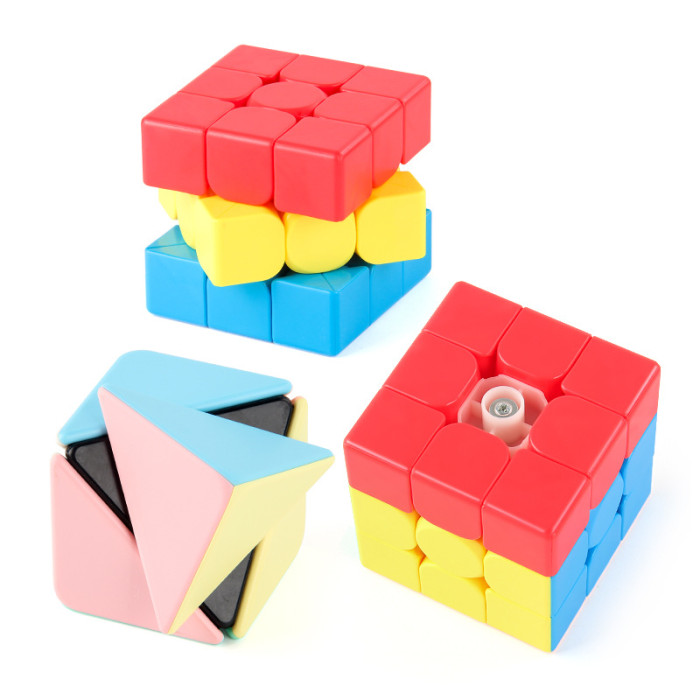 兒童益智順滑旋轉馬卡龍色三階魔方實色正階魔方玩具魔域教學系列