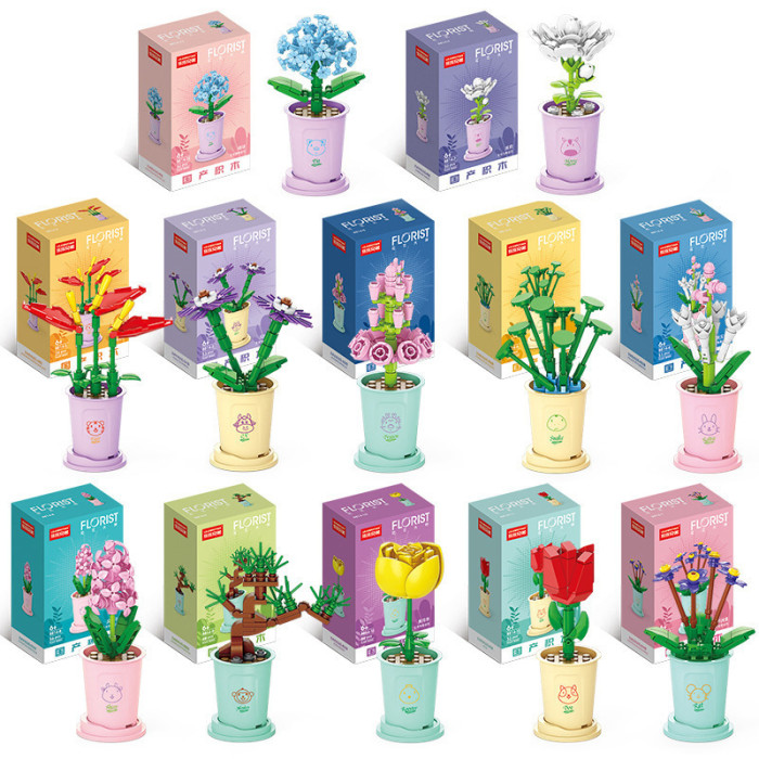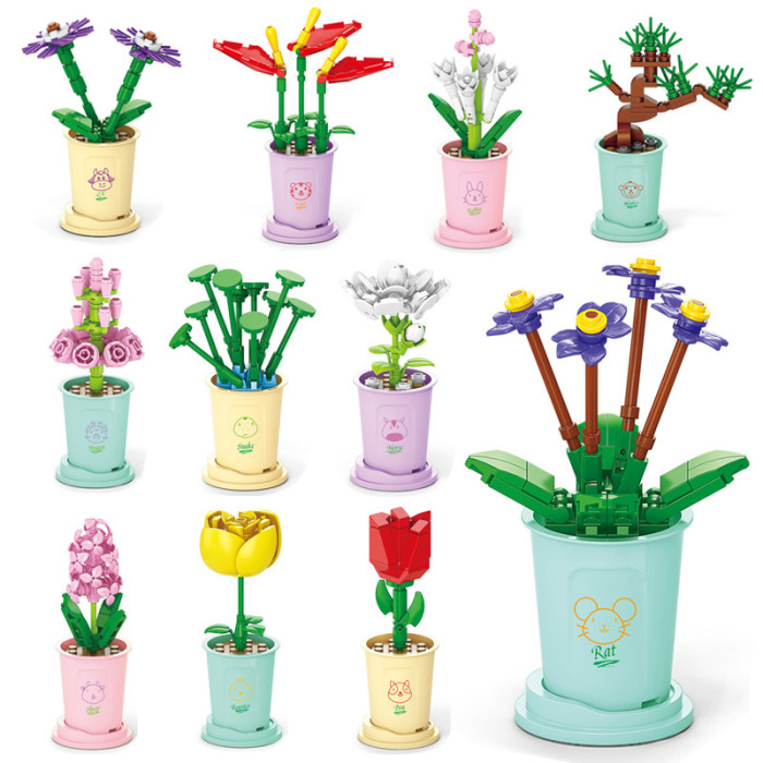 兒童益智小顆粒積木花仿真月季玫瑰兼容某高積木模型玩具