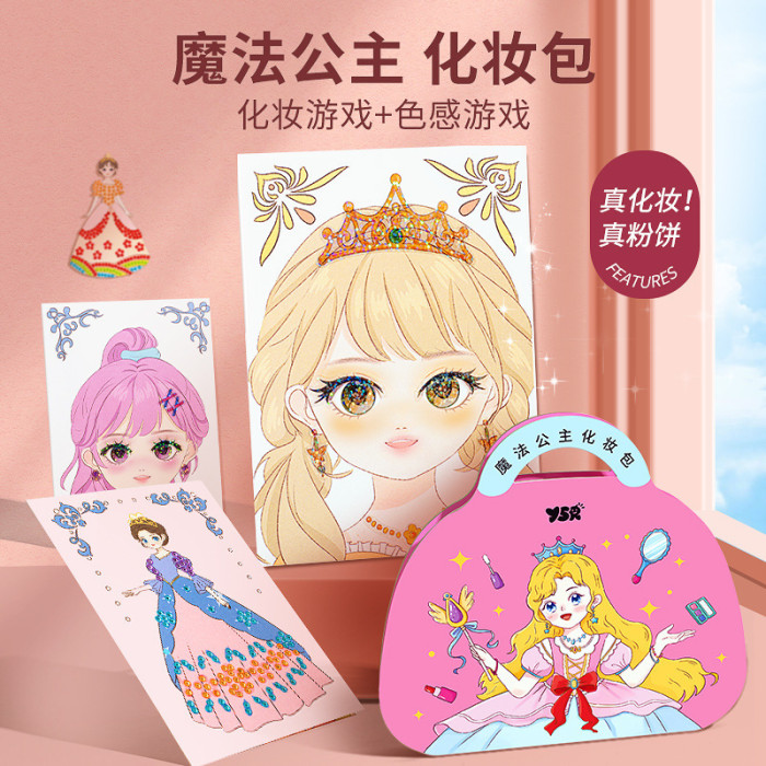兒童化妝品玩具套裝女孩diy玩具安靜貼紙新年5女孩芭莎公主化妝包