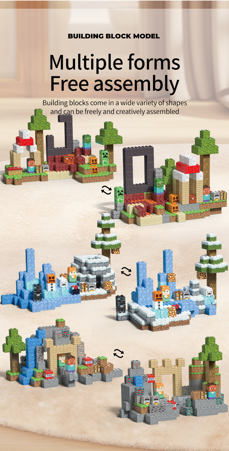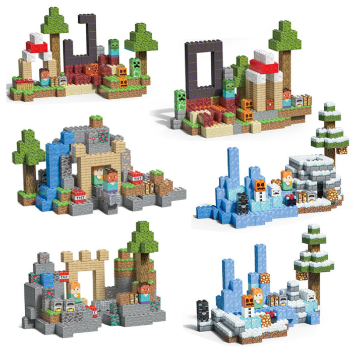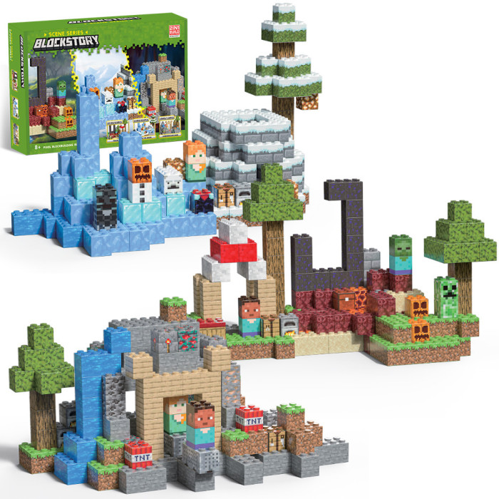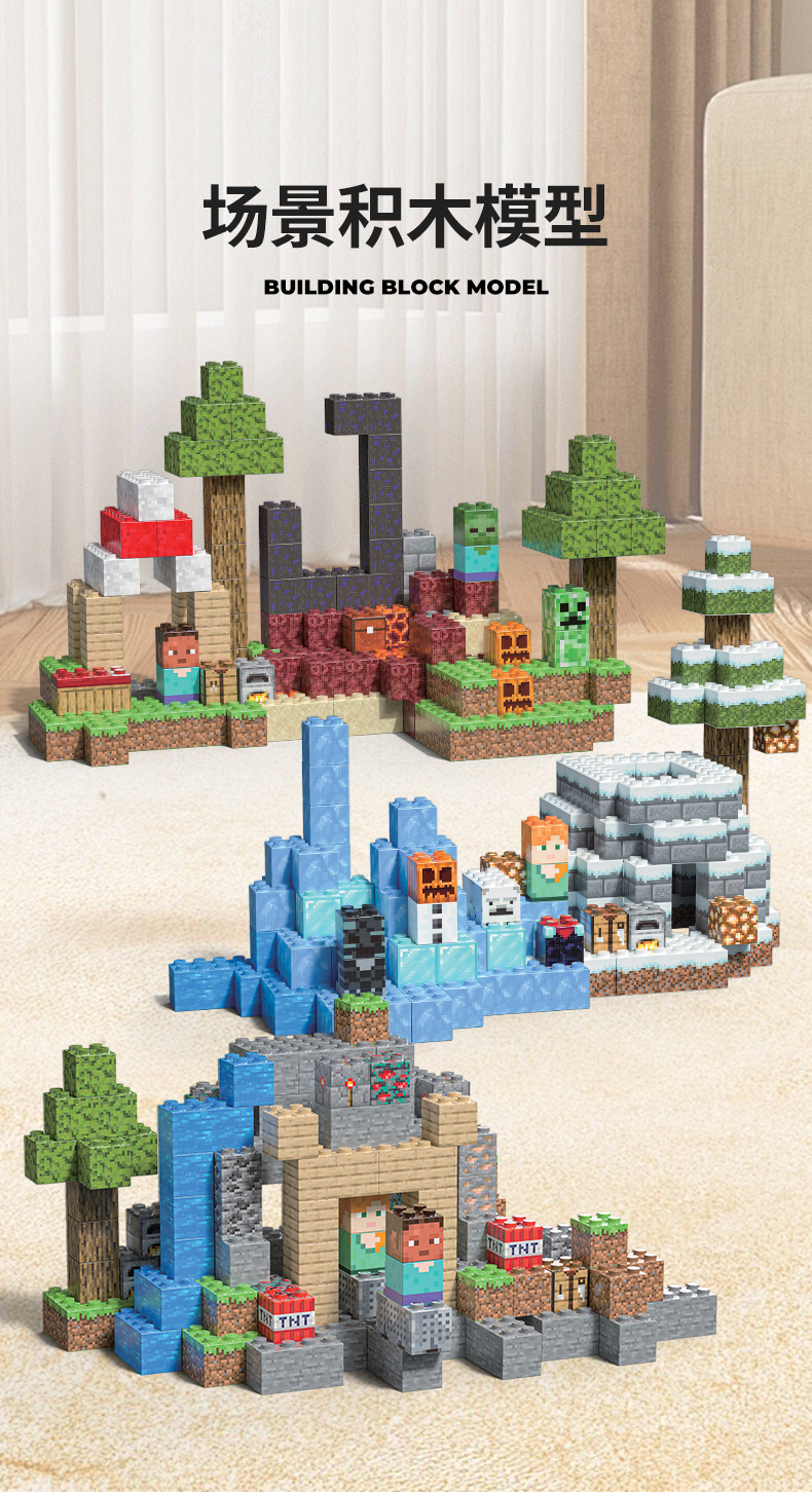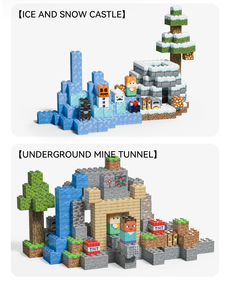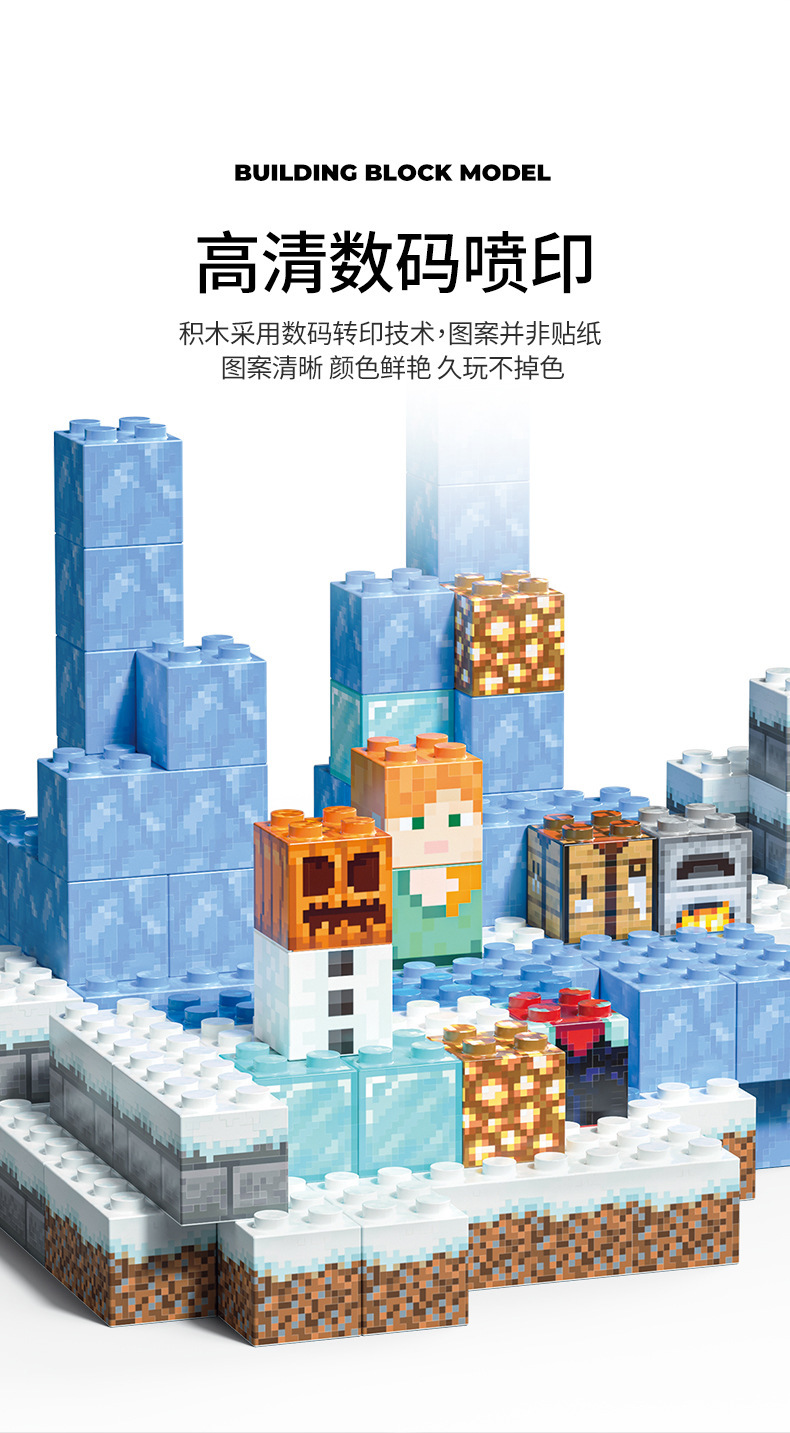 新品2CM冰雪城堡拼插積木玩具 山洞村莊旅行建築拼搭積木套裝