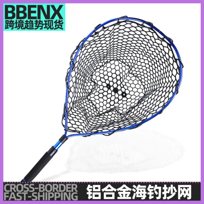 鋁合金抄網防掛帶定位伸縮抄網桿鱸魚抄網網兜撈魚海釣可攜式手抄網
