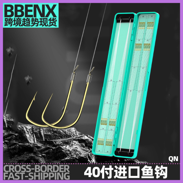 40付進口魚鉤40付進口魚鉤綁好成品子線雙鉤套金袖無刺子線雙鉤有刺鯽魚釣魚鉤